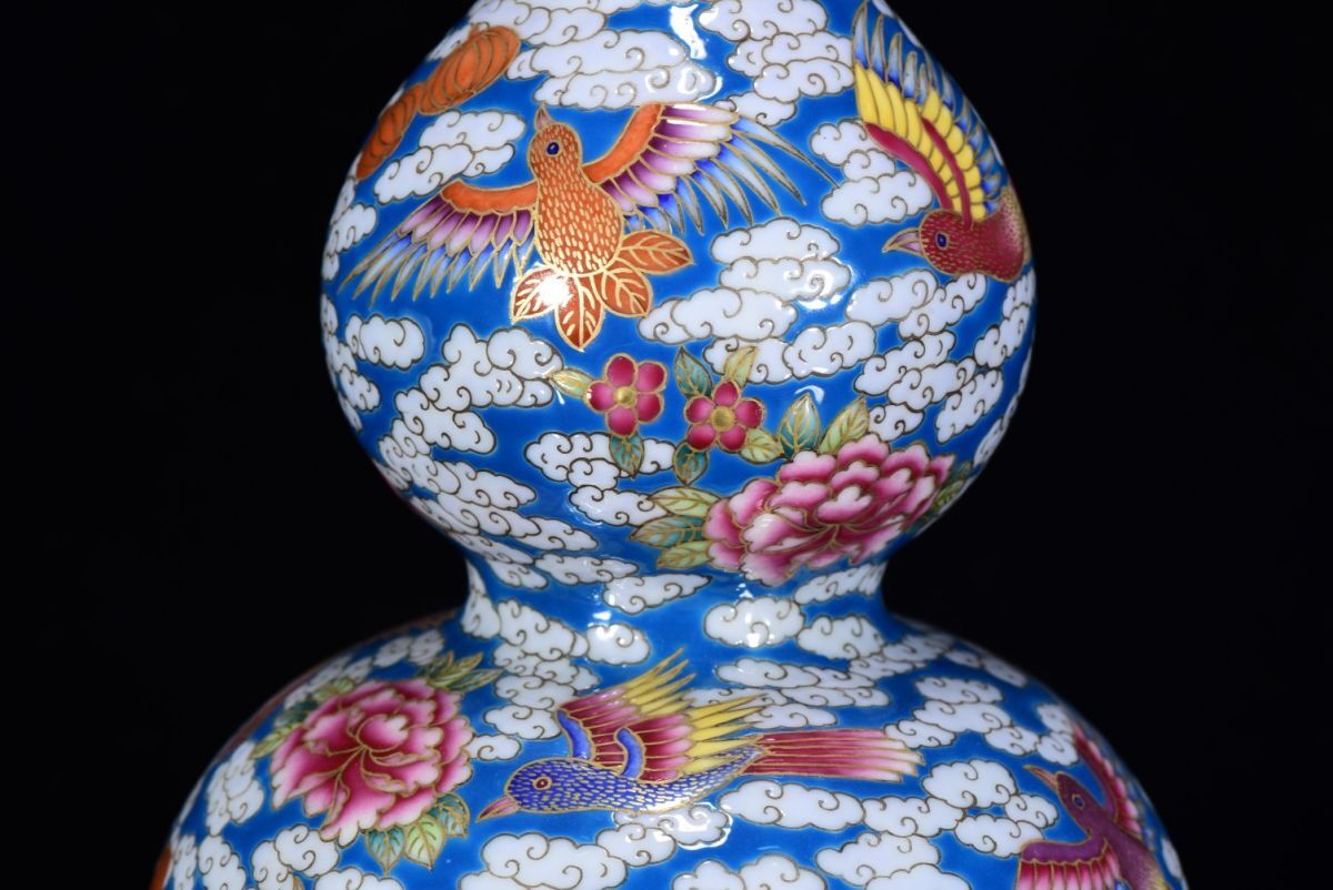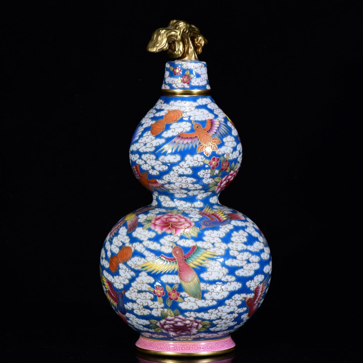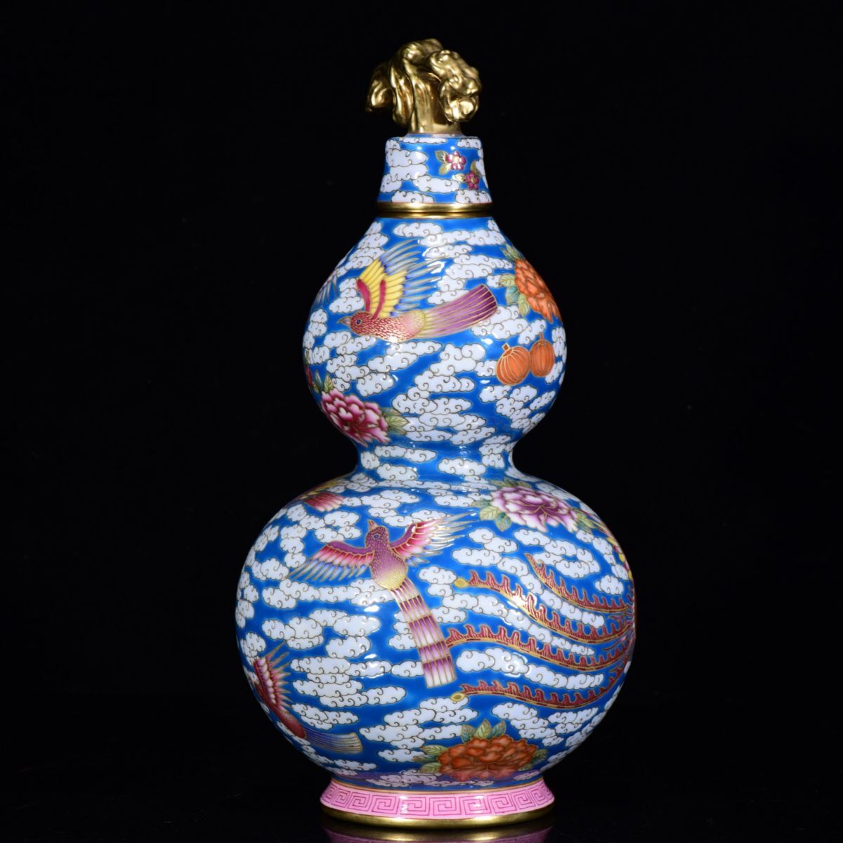 永し 清時代 雍正年製 粉彩描金鳳紋葫蘆瓶 古陶磁器 陶芸 皿 中国陶瓷器 唐瓷 置物擺件 古美術品 古賞物 収集 旧家蔵出 中国唐物 A6