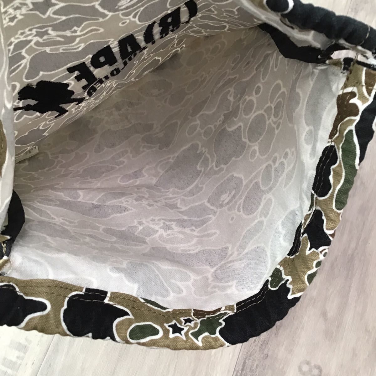 a bathing ape sta camo カーキ 巾着袋 です★