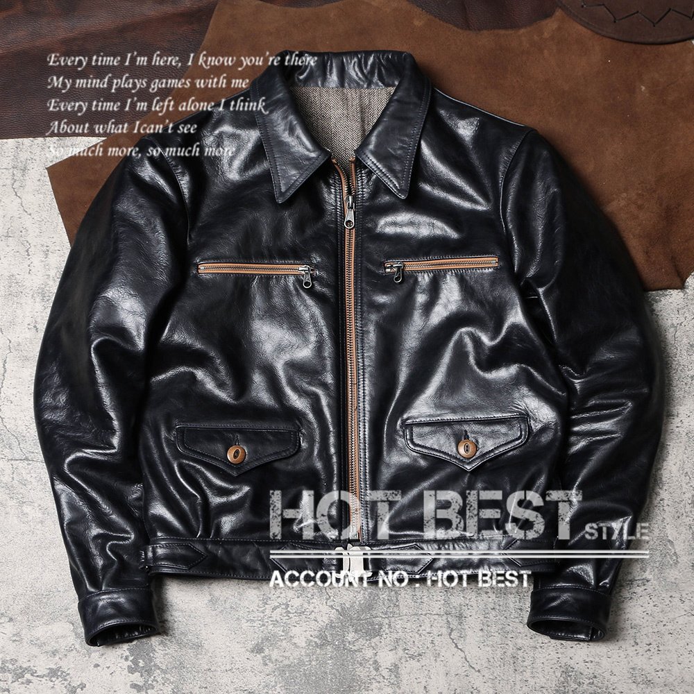 レア色 1.1mmホースハイド 復刻40's ドイツ軍 ハルトマン フライト レザージャケット メンズ 革ジャン オイルレザー 馬革 Y1565/XL
