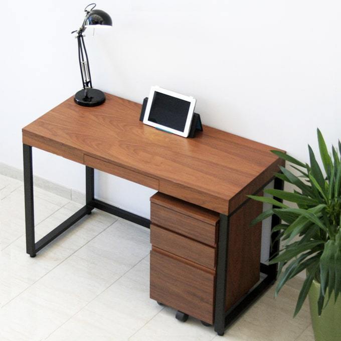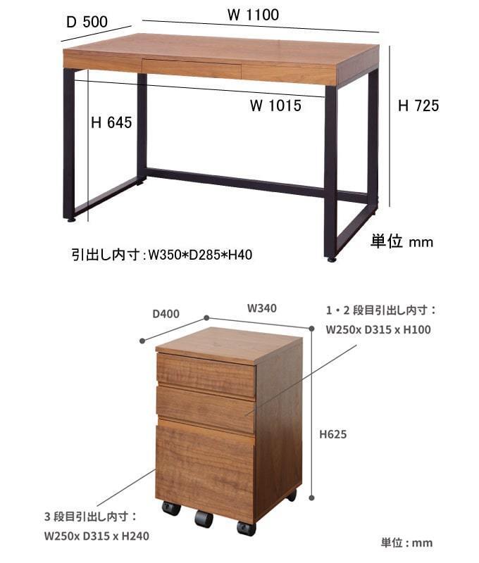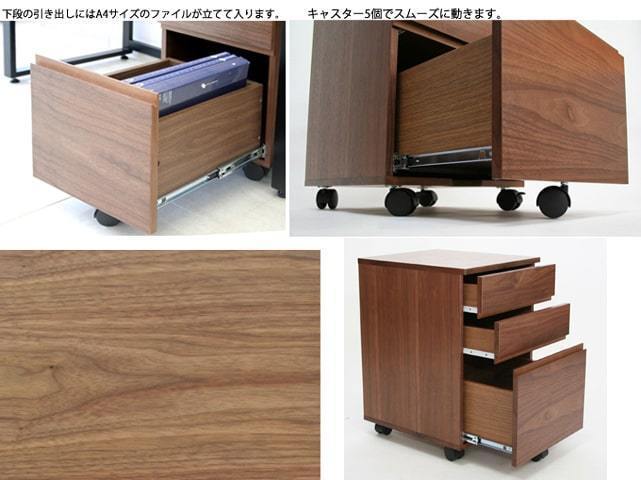 ウォールナット天然木のデスク(幅110cm)とワゴンのセットです。