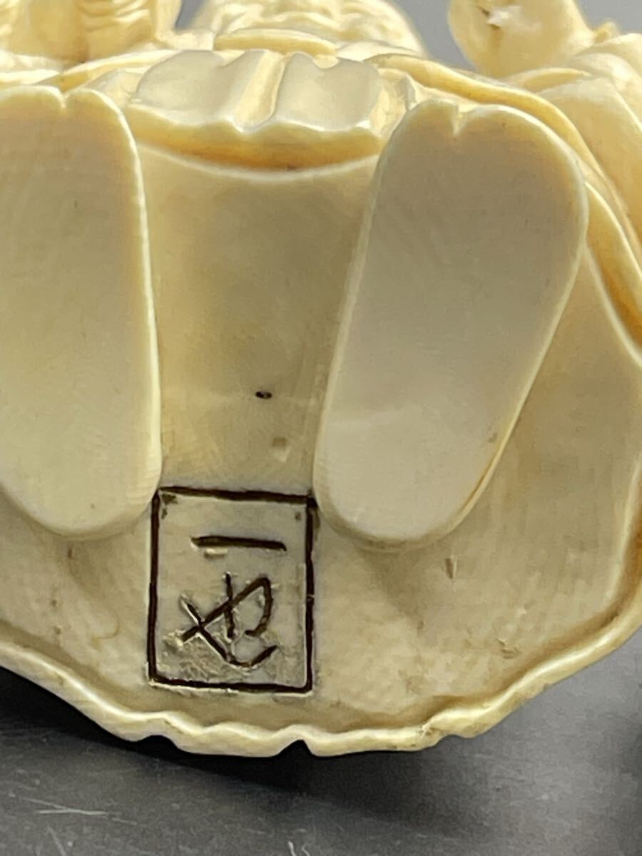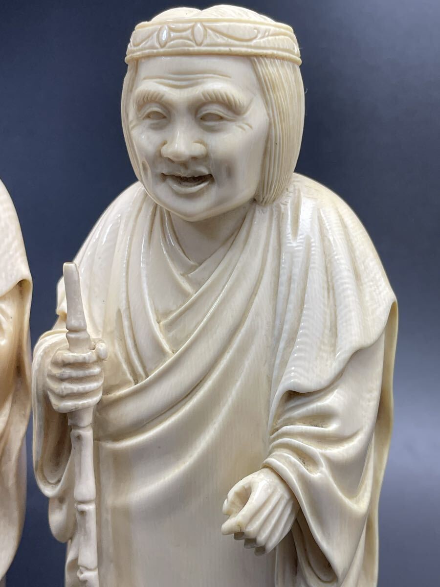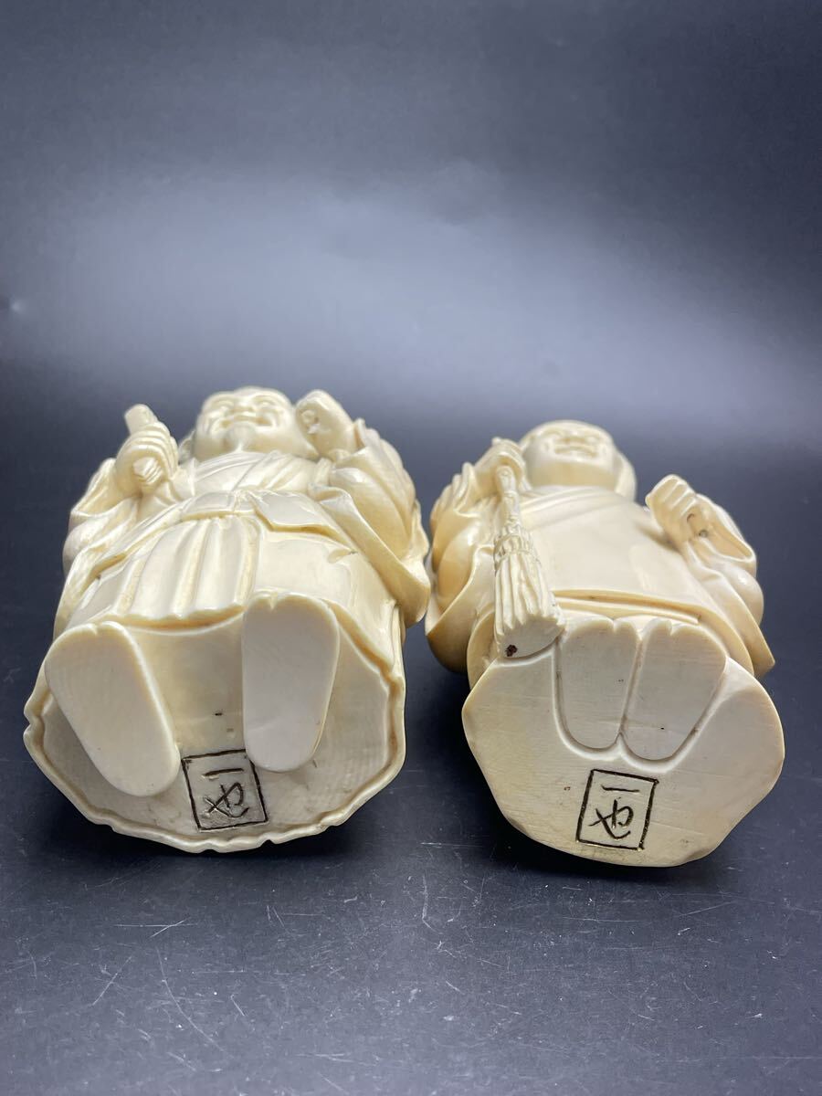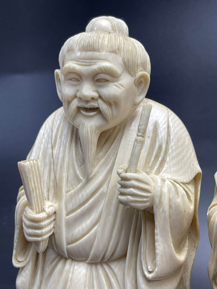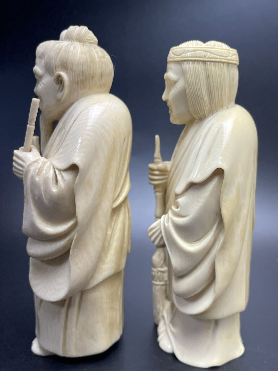 A1k7 鯨歯風高砂夫婦置物 作家物 1255g 一也在銘 細密彫刻 天然素材 中国美術 東洋彫刻