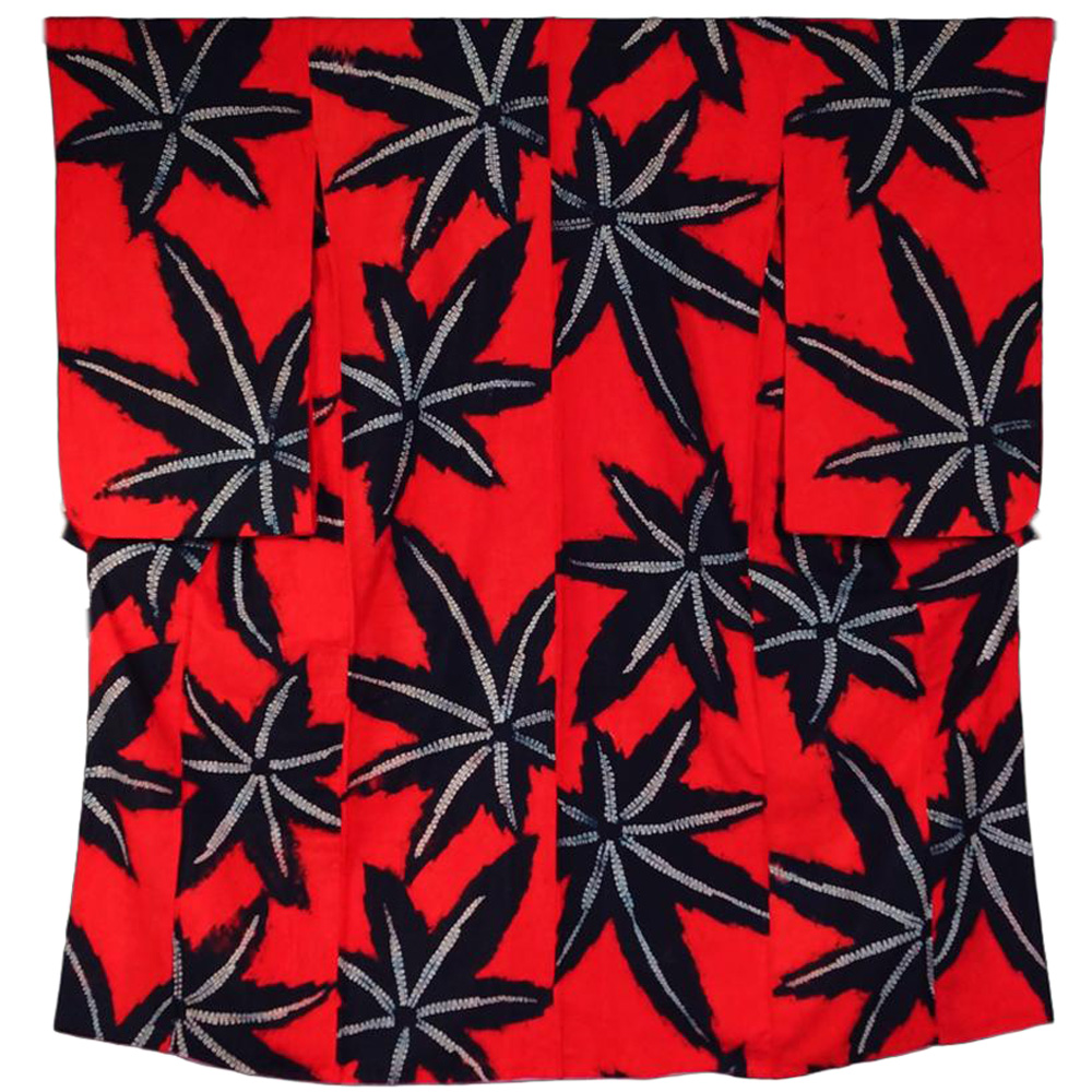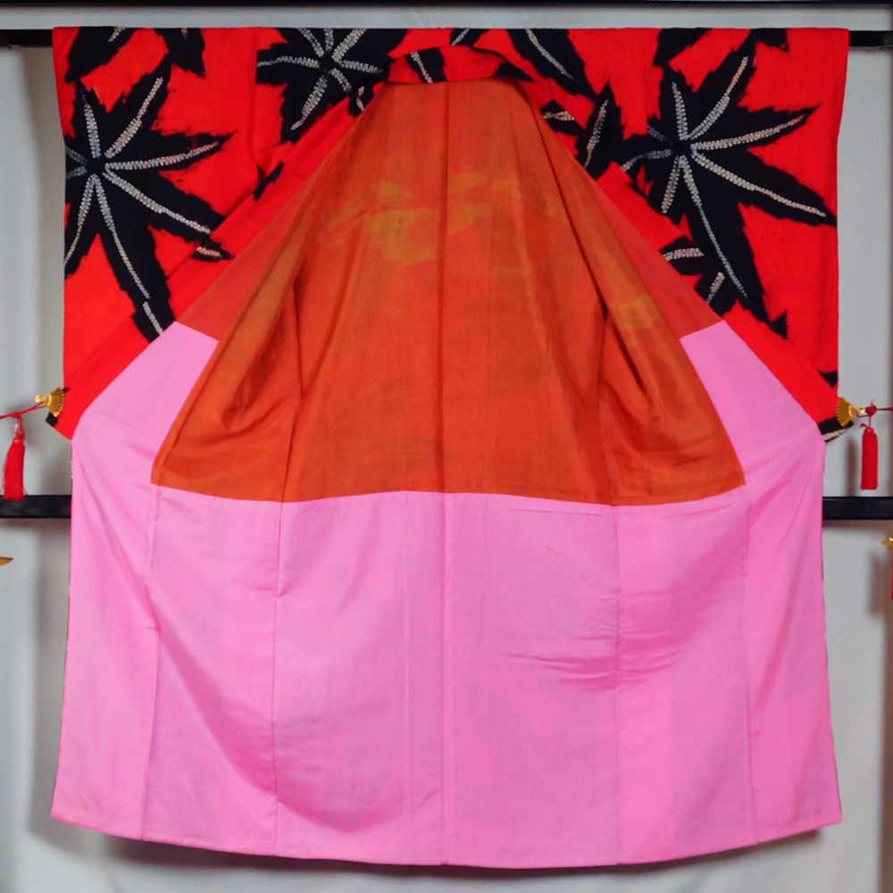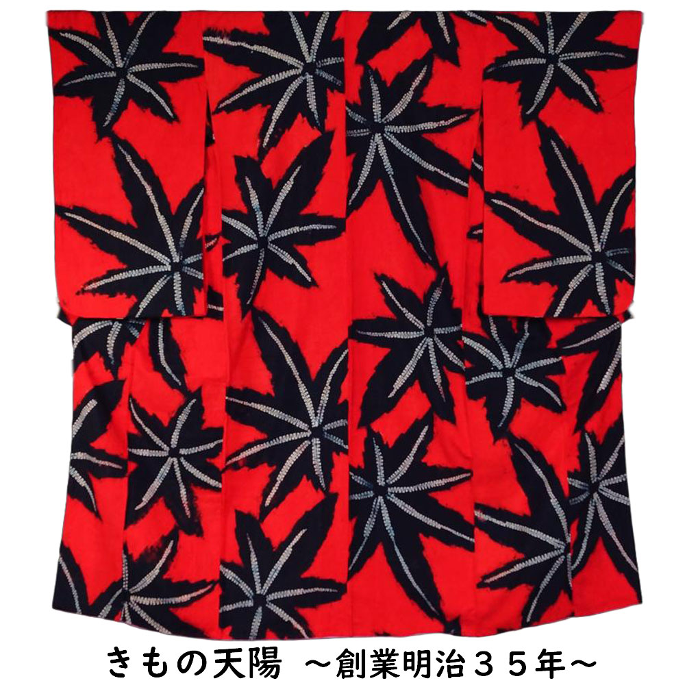 | 商品 説明 | 赤色系の絞り染めの地に楓模様が染められたアンティーク小紋です。お子様用のお着物かと存じます。胴裏生地は紅絹となっております。 難有品となりますので、ご着用は不可とさせていただきます。 |