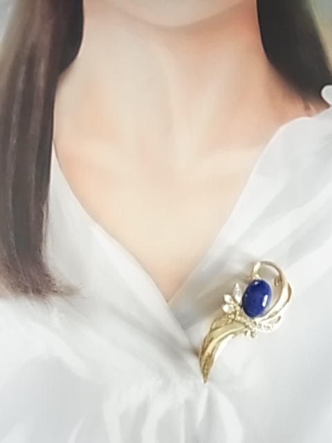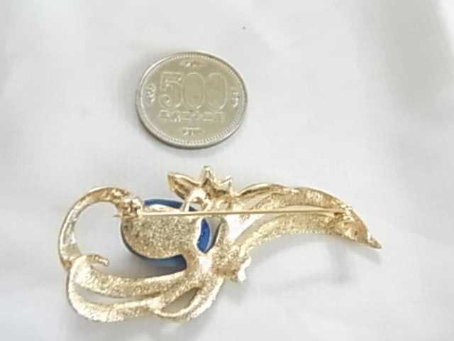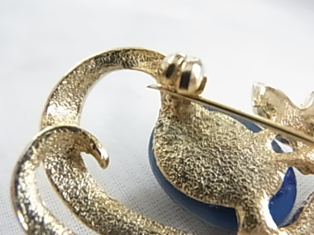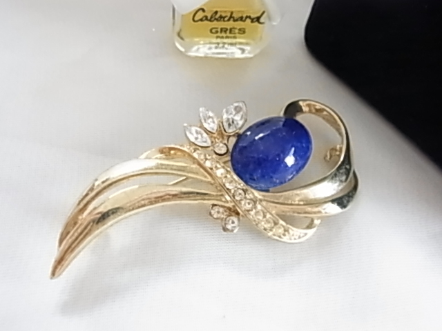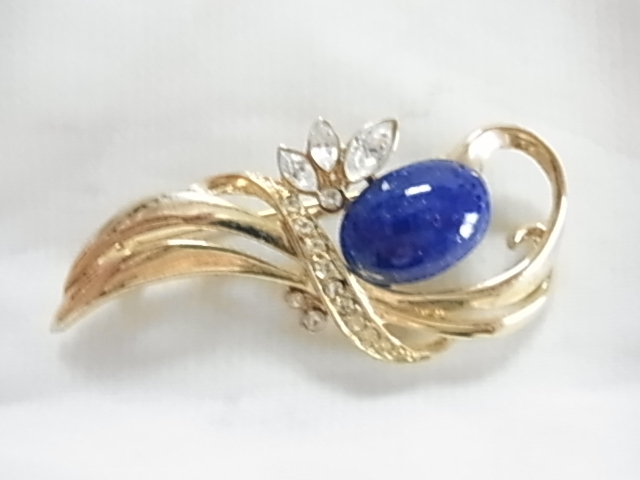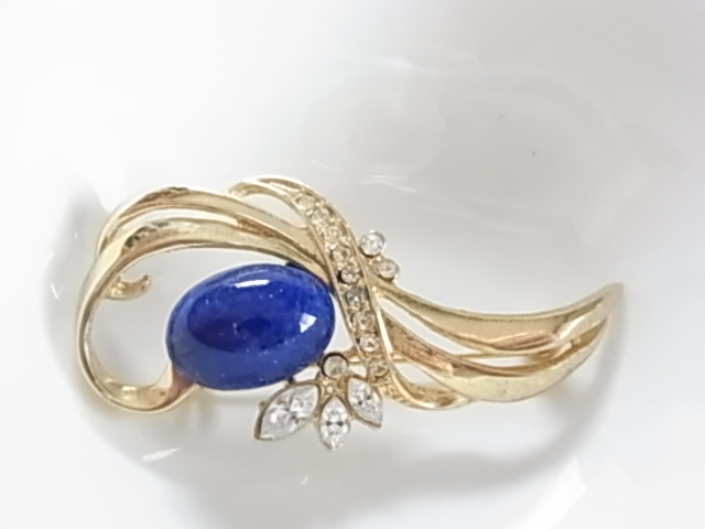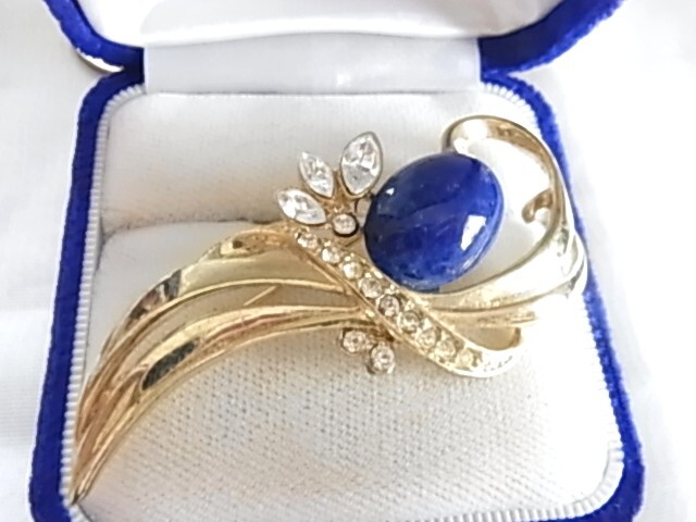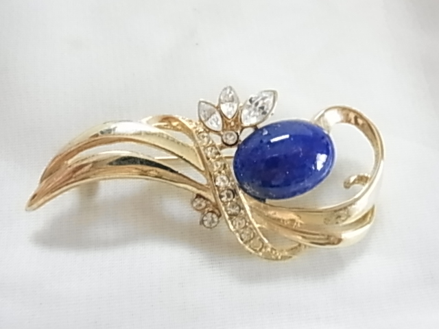 100円~ビンテージ/ヴィンテージ スマルトブルートーンのカボションカットのストーン調 クリアラインストーン輝くビジュー ブローチ★