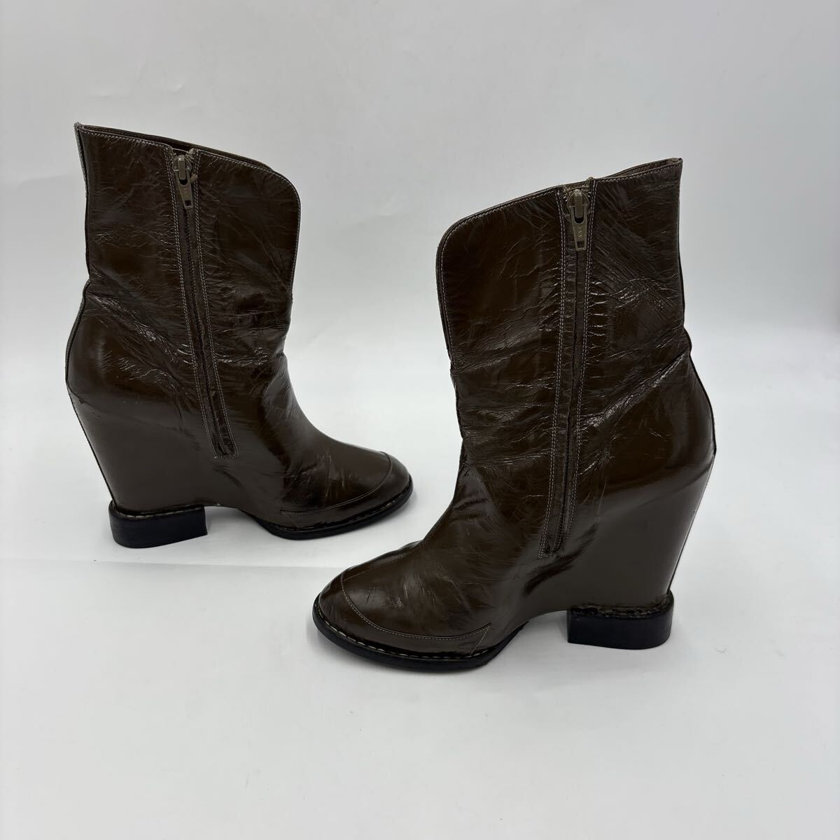 O ■ 高級感溢れる!! '洗練されたデザイン' Chloe クロエ 光沢 サイドジップ ショートブーツ ブーティー 婦人靴 レディース シューズ 茶系