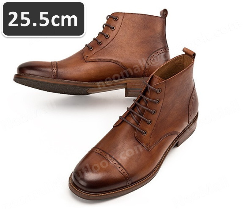 送料込☆ 本革 牛革 メンズ ショートブーツ ブラウン サイズ 25.5cm 革靴 靴 カジュアル 屈曲性 通勤 軽量 インポート品【n051】