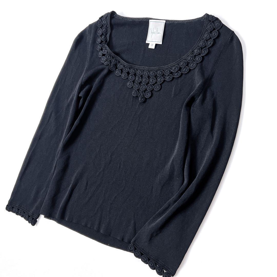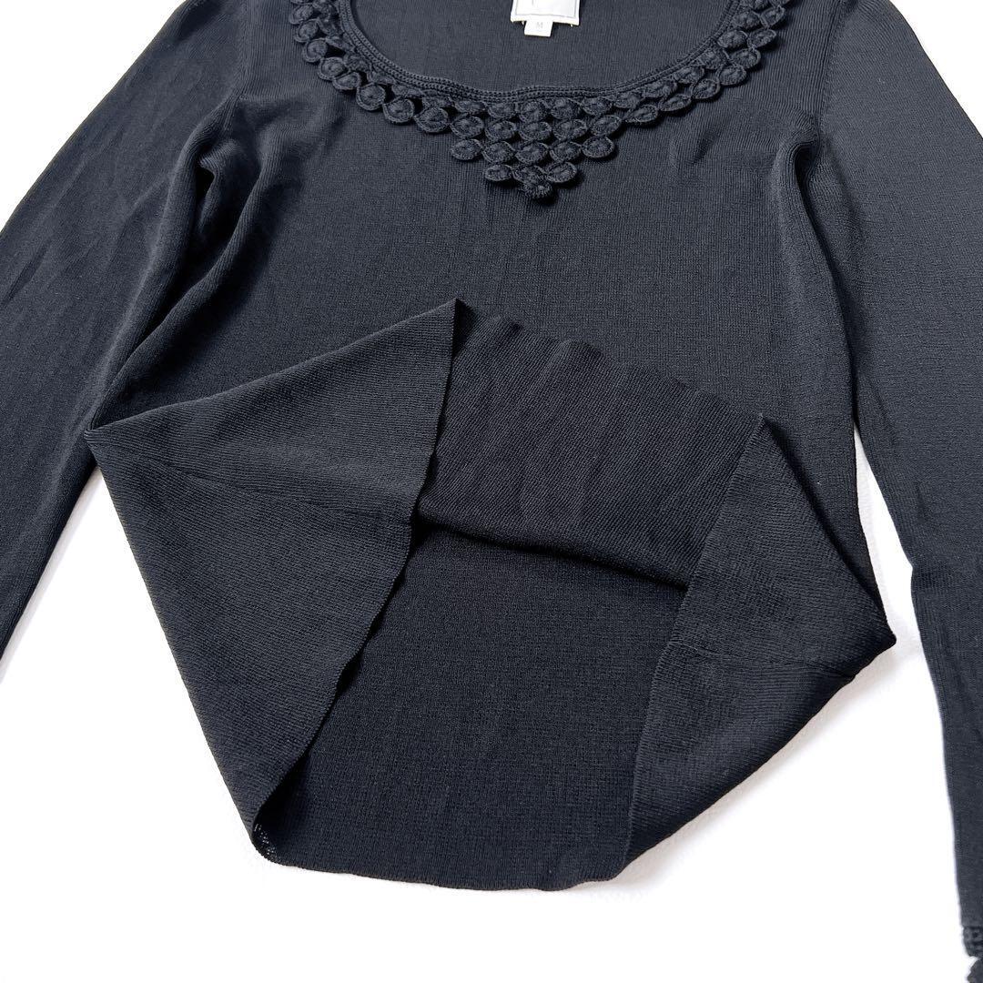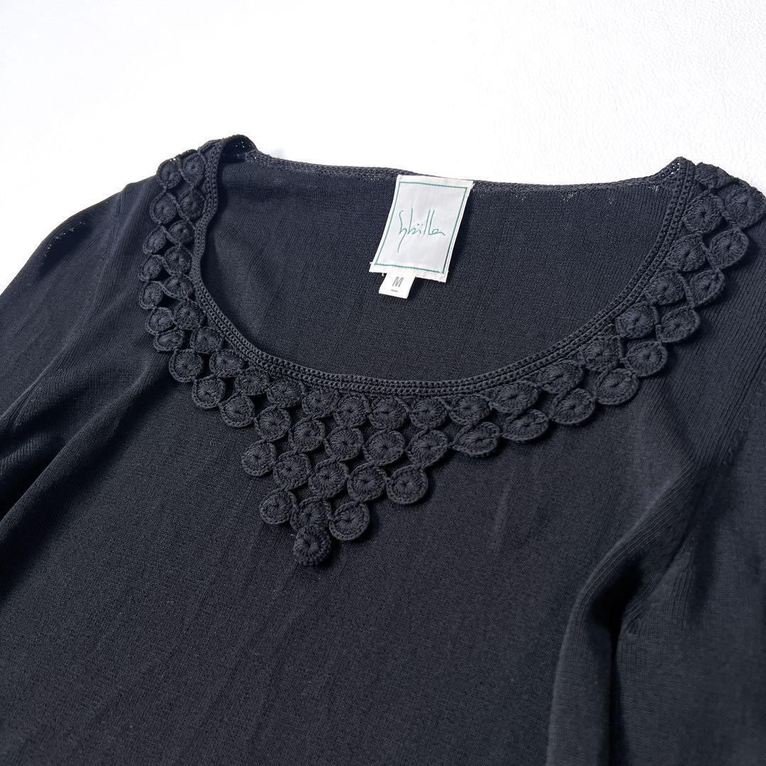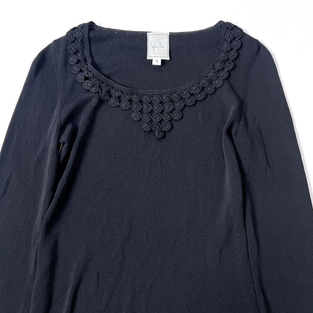 シビラ 刺繍 幾何学模様 装飾 ドライタッチ ニット プルオーバー 長袖 黒