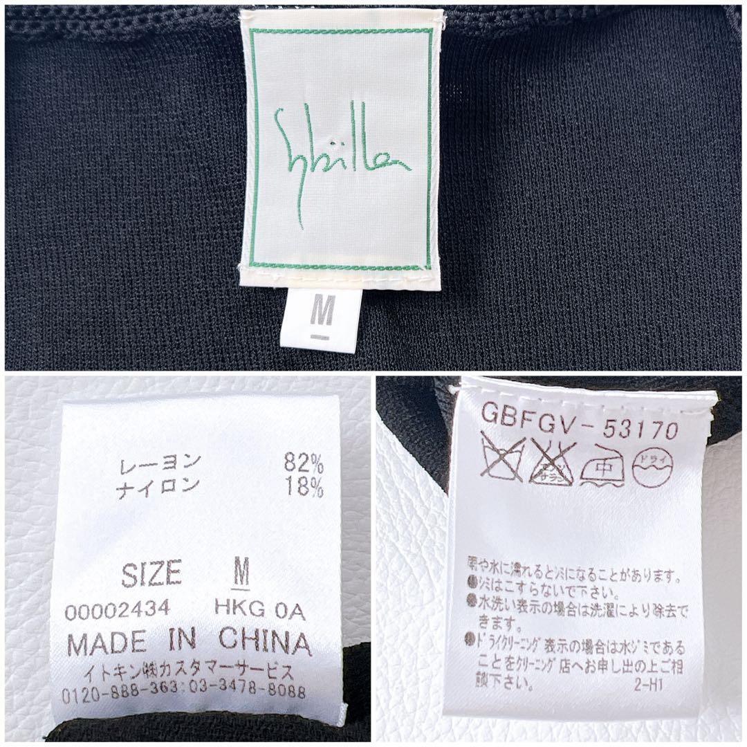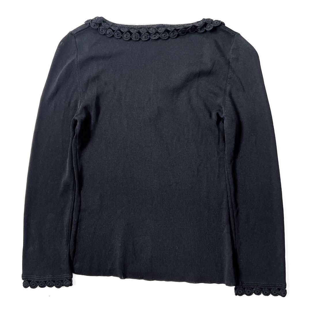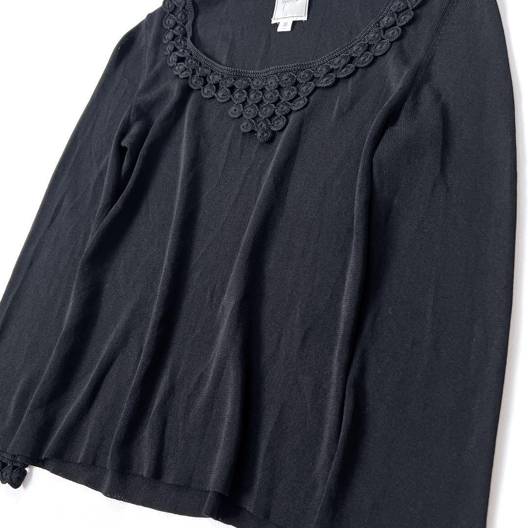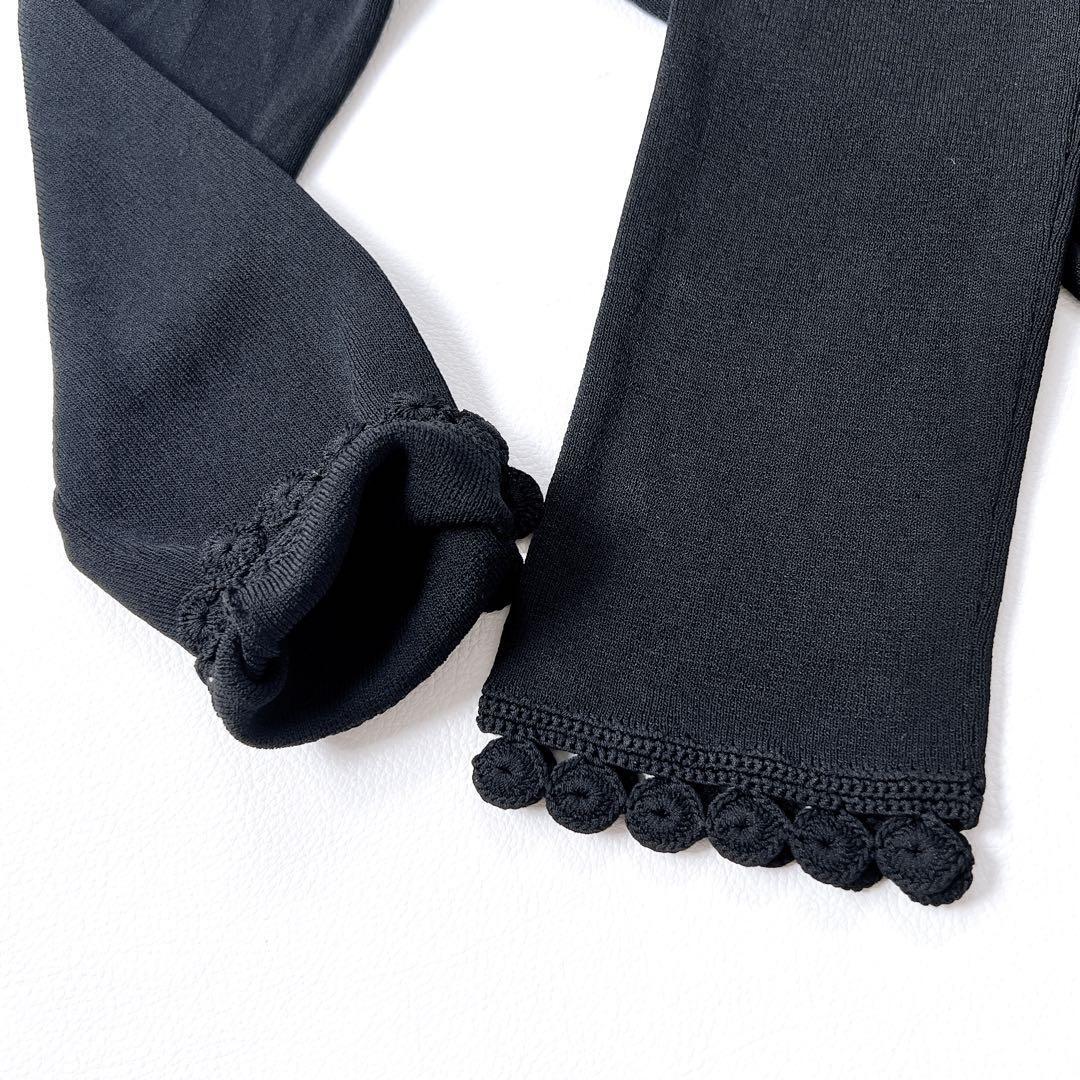 シビラ 刺繍 幾何学模様 装飾 ドライタッチ ニット プルオーバー 長袖 黒