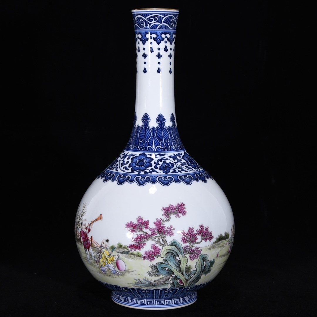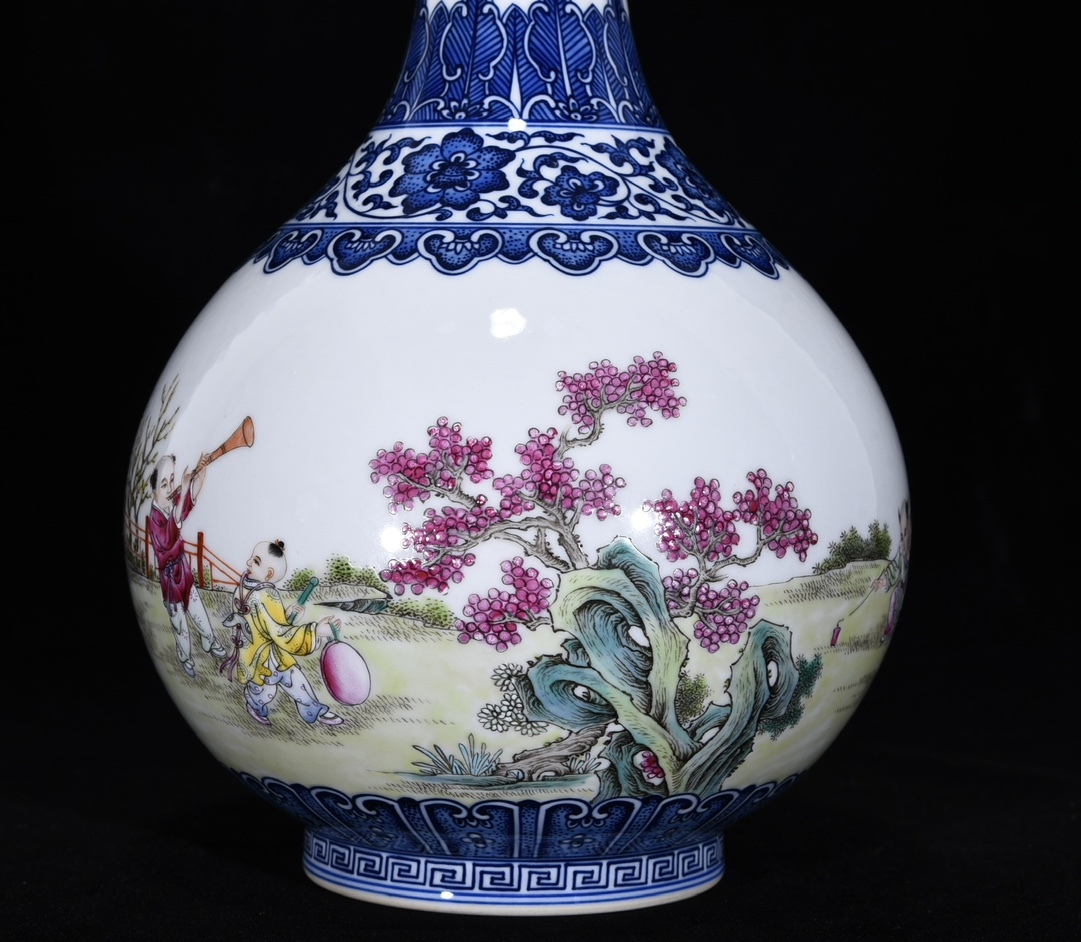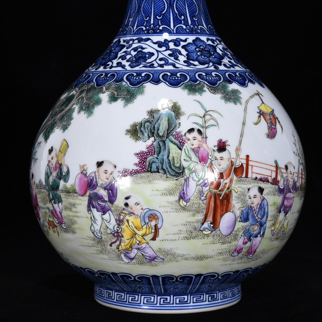 | 人間国宝 古磁器 白磁【清乾隆青花粉彩嬰戯図胆瓶】 工芸品 陶芸 磁器 置物 收藏品 時代物 中国美術 | |||