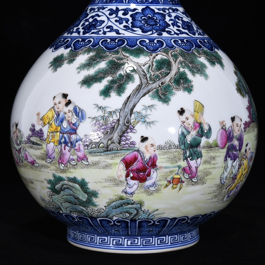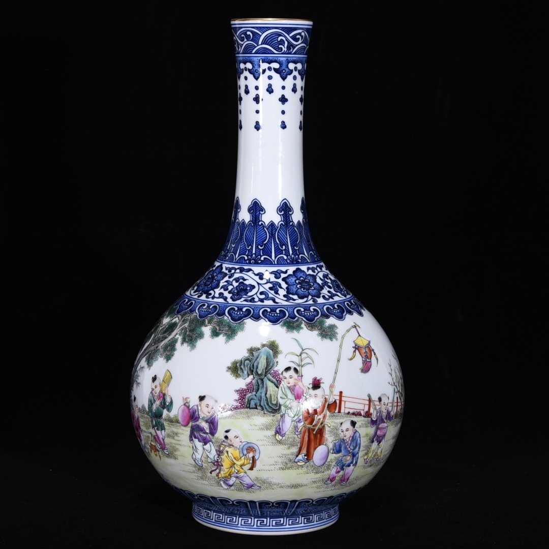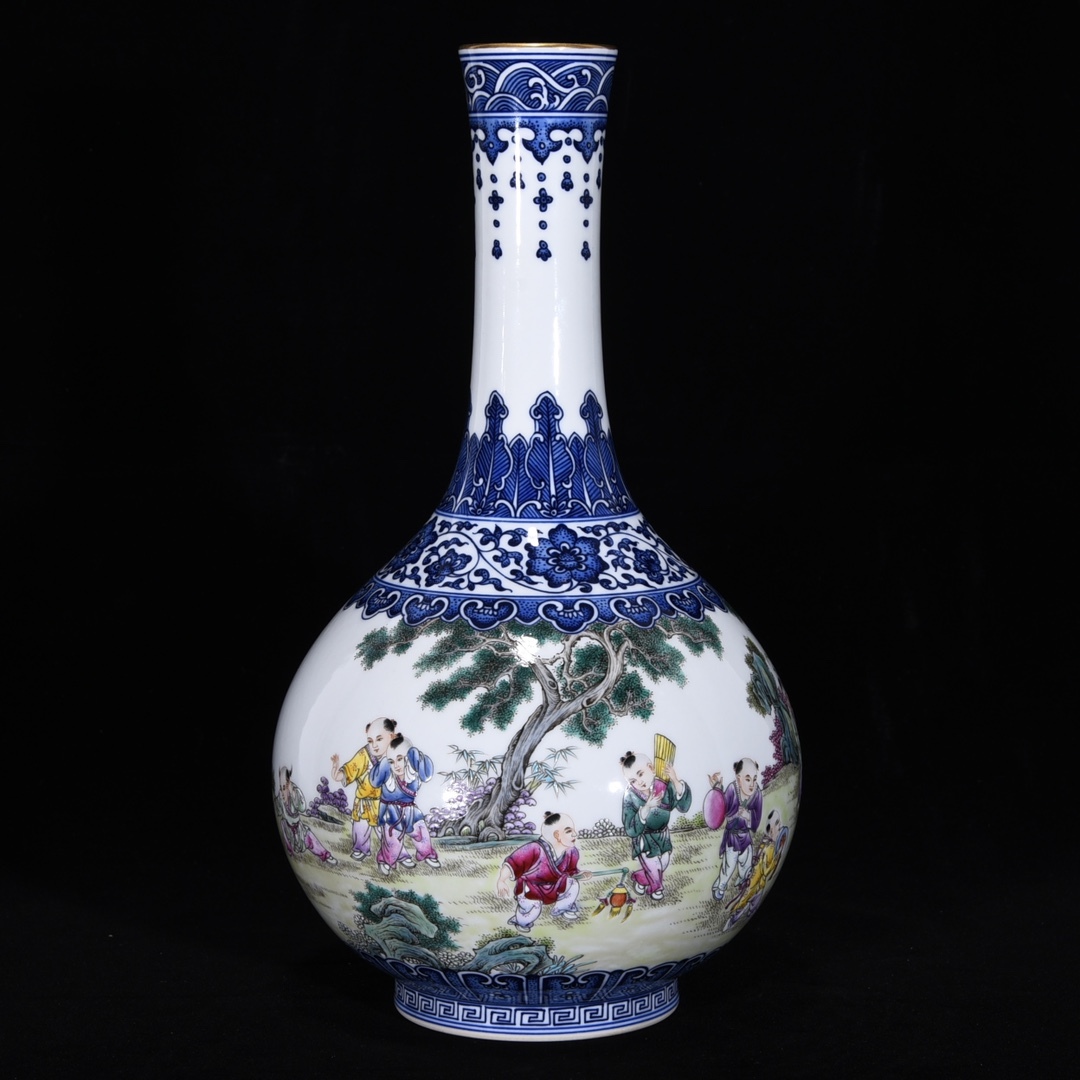 | 人間国宝 古磁器 白磁【清乾隆青花粉彩嬰戯図胆瓶】 工芸品 陶芸 磁器 置物 收藏品 時代物 中国美術 | |||