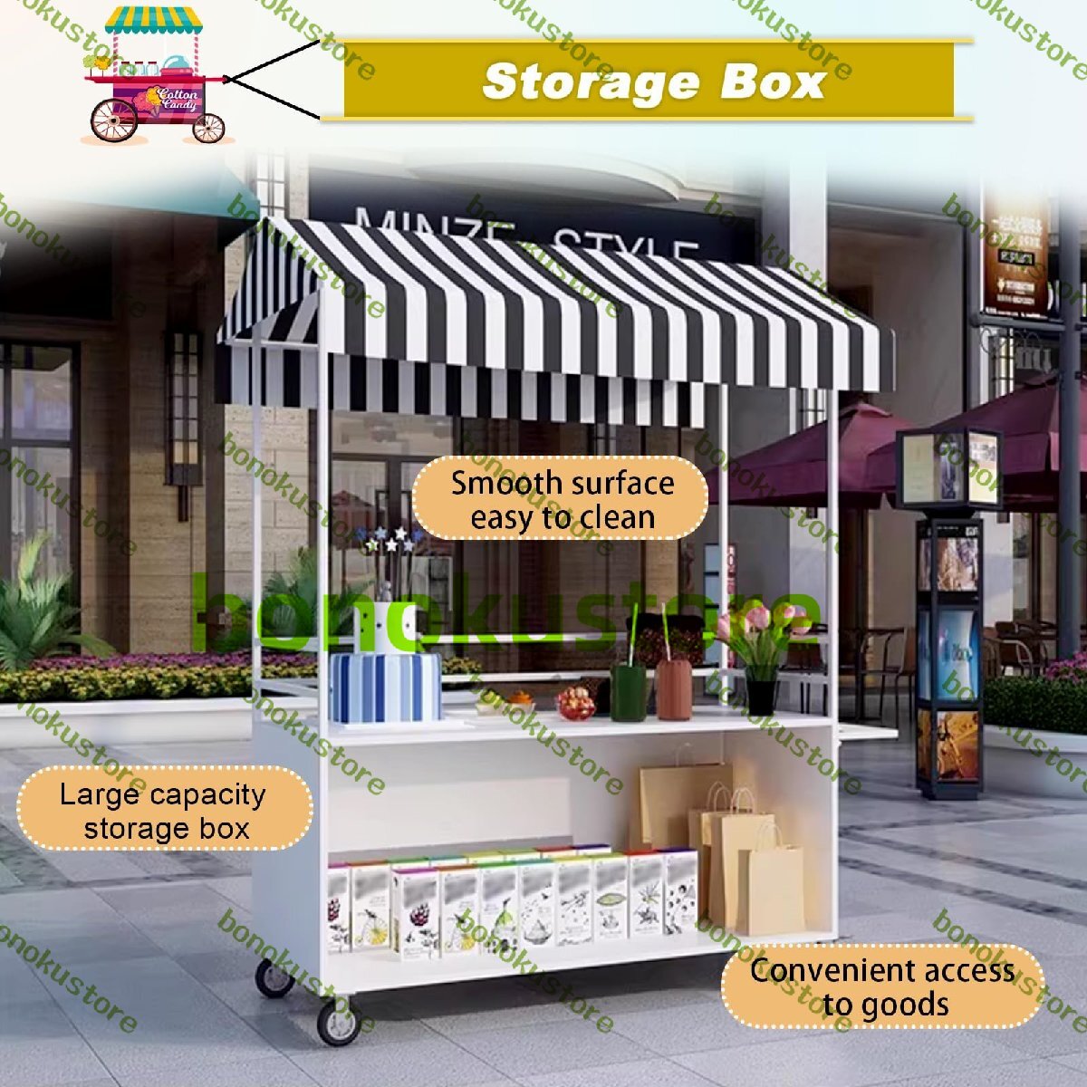 幅広い用途:この多用途の移動販売カートは、飲料専門店、スナック小売店、移動式コーヒースタンド、ファーマーズマーケット、サプライヤー、文化・クリエイティブマーケット、フェスティバルをテーマにした販売、観光地などに最適です。人通りの多い場所に簡単に移動でき、集客、商品の宣伝、売上向上に役立ちます。