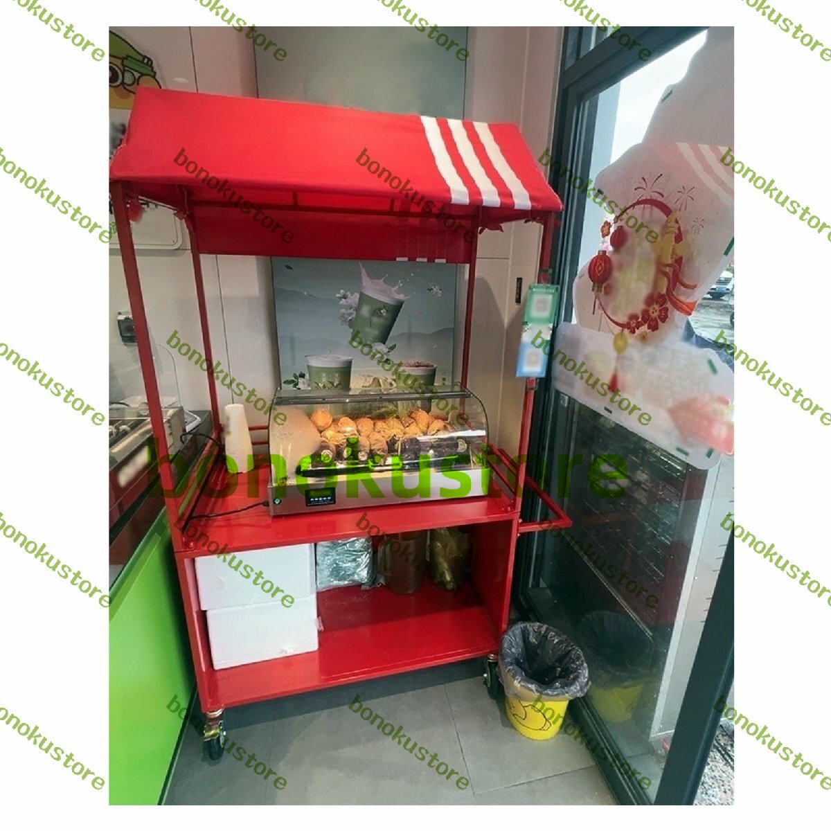 屋台ブース 屋台食品販売カート、ナイトマーケットディスプレイカウンター食品手押し車、オーニングと車輪付き、ホットドッグミルクティー寿司クラフトショー用(Red L140CM/55IN)