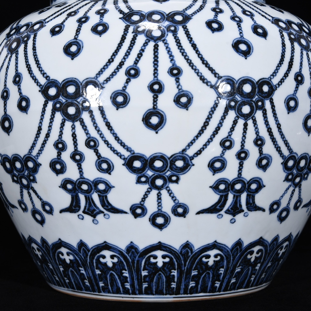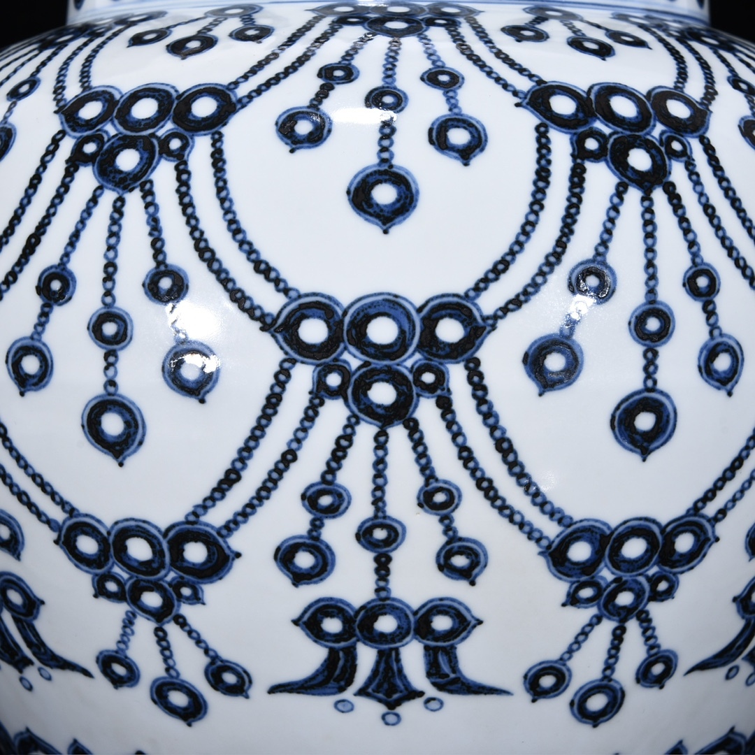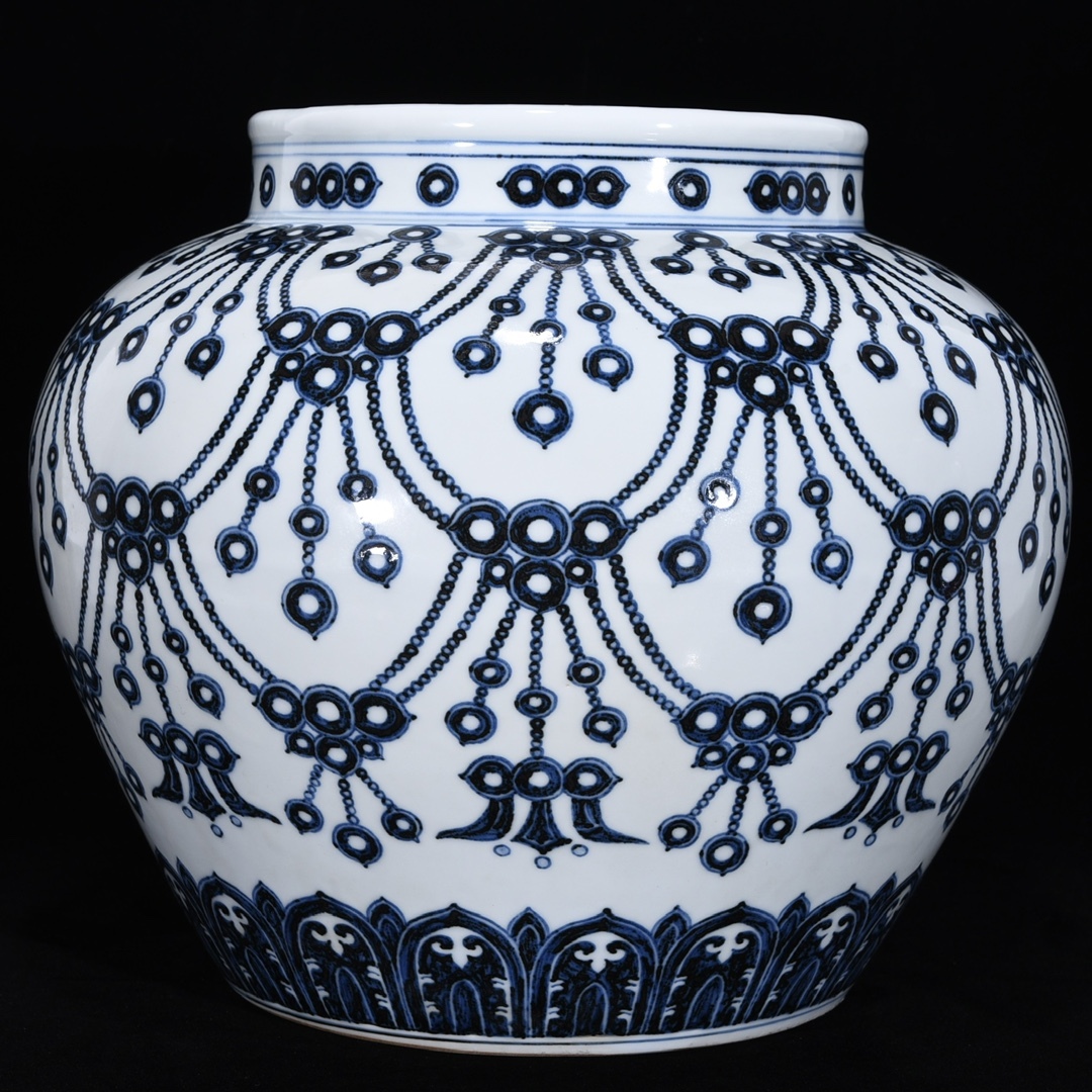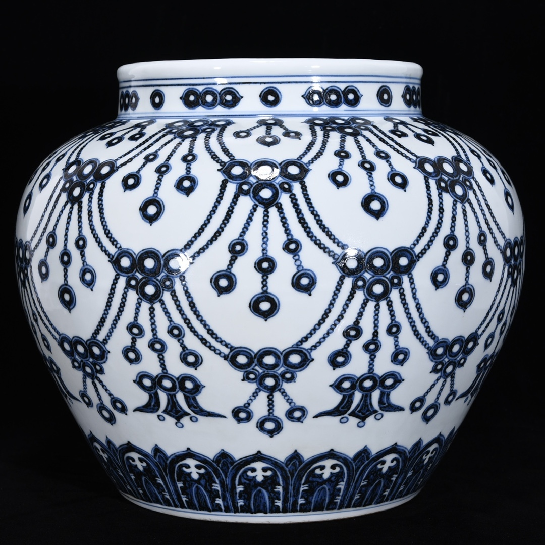 | 人間国宝 古磁器 白磁【明宣徳青花瓔珞紋缶】 工芸品 陶芸 磁器 置物 收藏品 時代物 中国美術 | |||