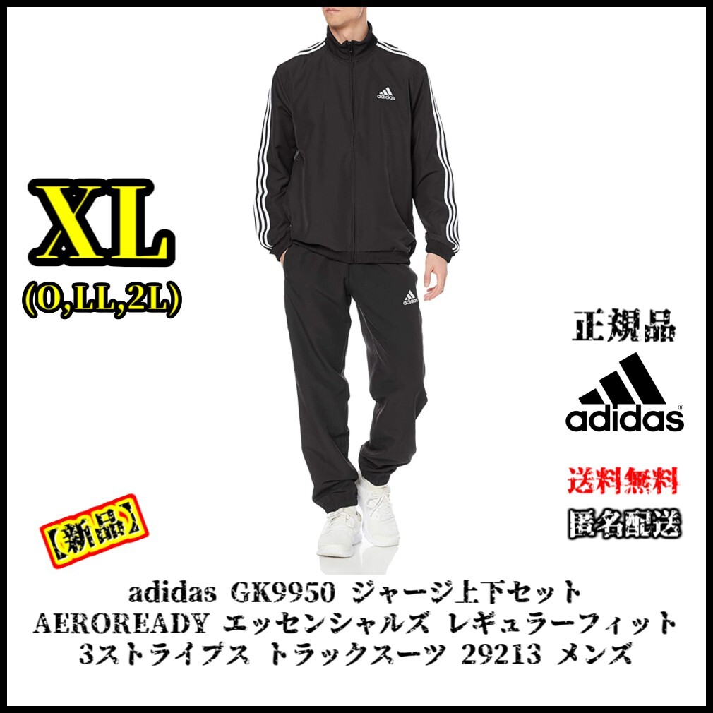 【新品】adidas GK9950 XL(O,LL,2L)サイズ ジャージ上下セット クロス上下セット AEROREADY エッセンシャルズ レギュラーフィット 3ストライプス トラックスーツ 29213 メンズ ジャージ スポーツ トレーニング ウォーキング ランニング アスリート ジム 筋トレ 格闘技 運動 リラックス パジャマ