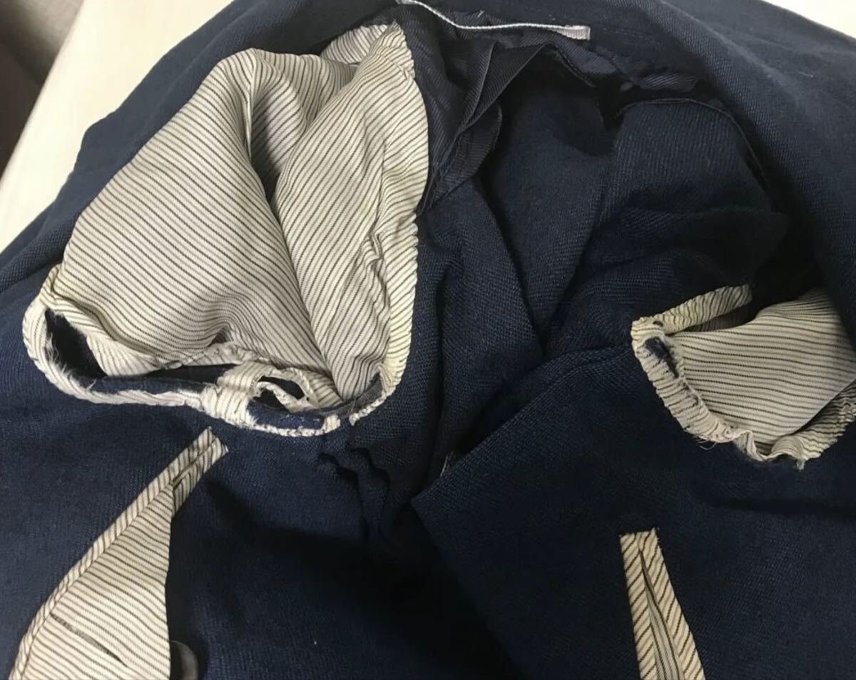 使用状況 : 購入後気に入って着用していましたので全体的に着用感があります。毛羽立ちや裏地の脇部分に生地破れなどありますがまだ着用できます。