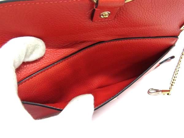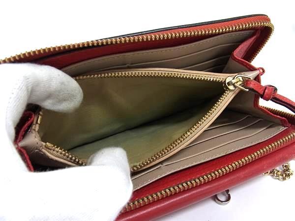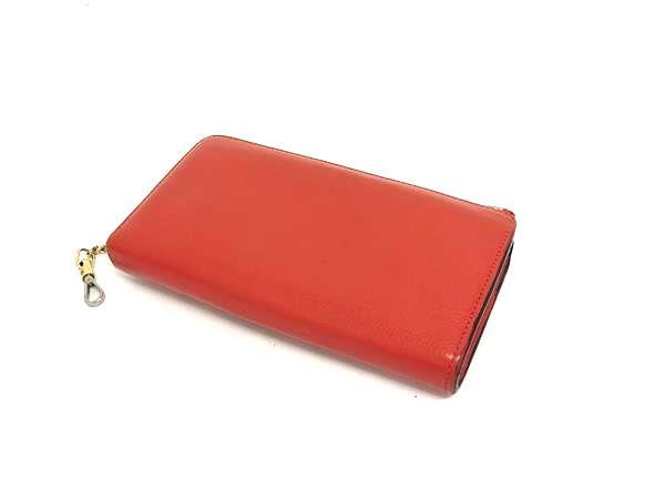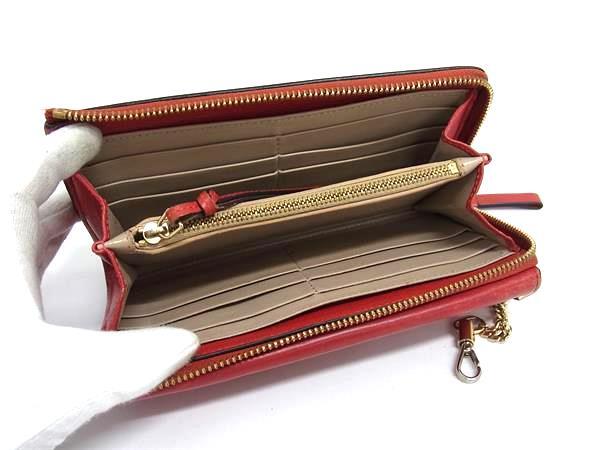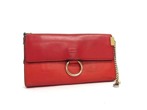 1円 Chloe クロエ フェイ レザー L字ファスナー チェーン 長財布 ウォレット 小銭入れ 札入れ カード入れ レディース レッド系 BR0433