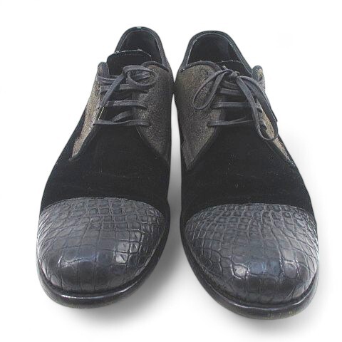 ドルチェ&ガッバーナ ドルガバ DOLCE&GABBANA ドレスシューズ 8.5 ブラック 黒系 レザー クロコ ベロア イタリア製 メンズ