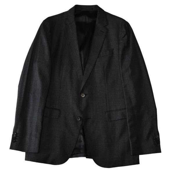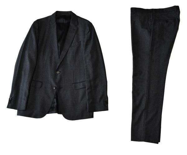 ★ヒューゴボス★HUGO BOSS★高級生地REDA#お洒落な黒グレー格子柄#ジャケット&パンツ#上品な艶と滑らかな肌触り2釦シングルスーツ50#L~LL