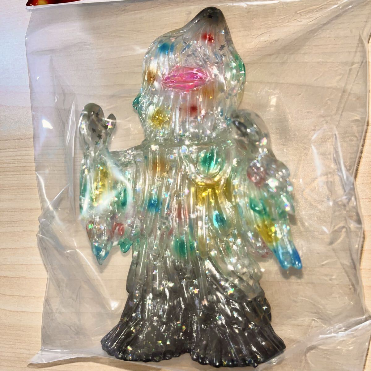 25年9月、ツブコンにてリリースされたソフビです。クリア成型にキラキラ光る星型飾りの入ったザザーンです。