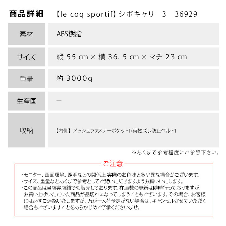 | 商品名 | 36929【001.ブラック】キャリーケース 32L [ルコックスポルティフ] [le coq sprotif] |