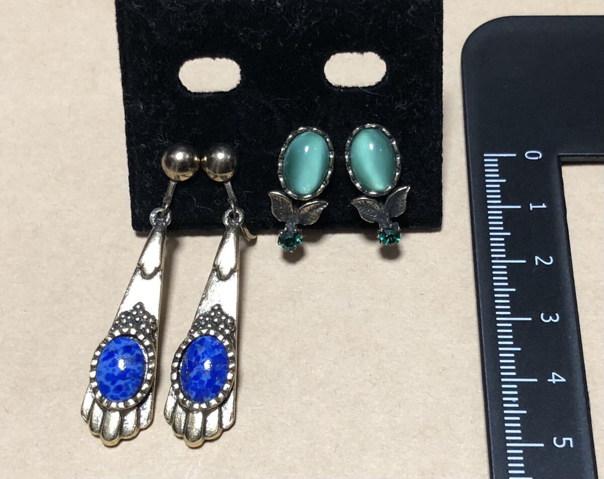 ・青色の石付きイヤリング(ドロップ型・揺れるタイプ)