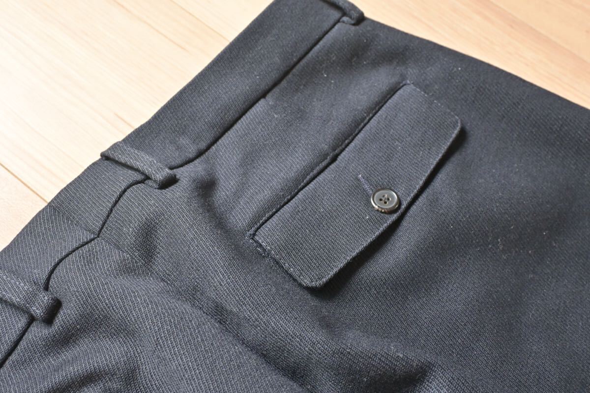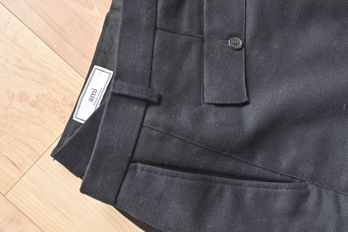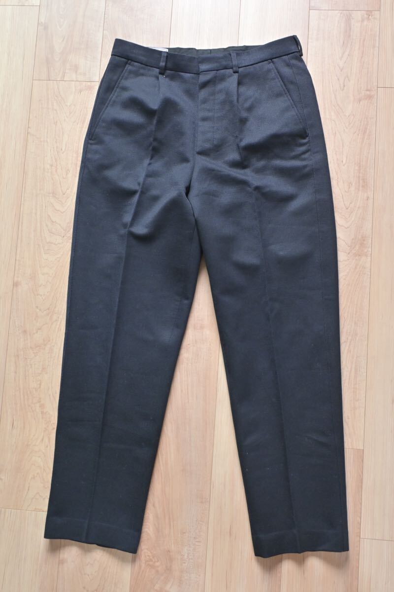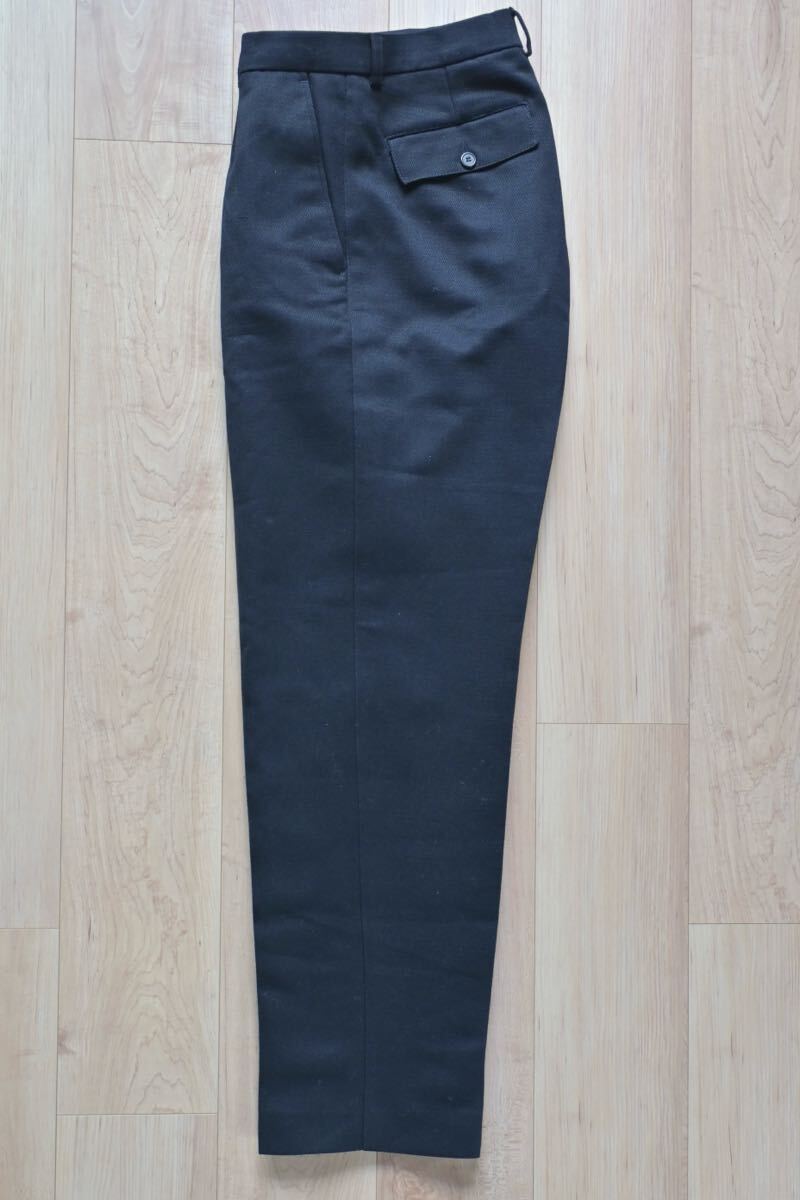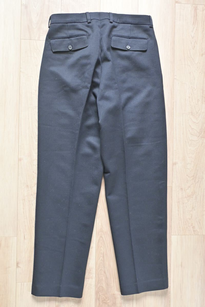 サイズは38で、ウエスト80股上33股下74裾幅21cm程です。センタープレスが入っている為前から見ると細目に見えますが、ワイドテーパードくらいのゆったりしたシルエットです。
