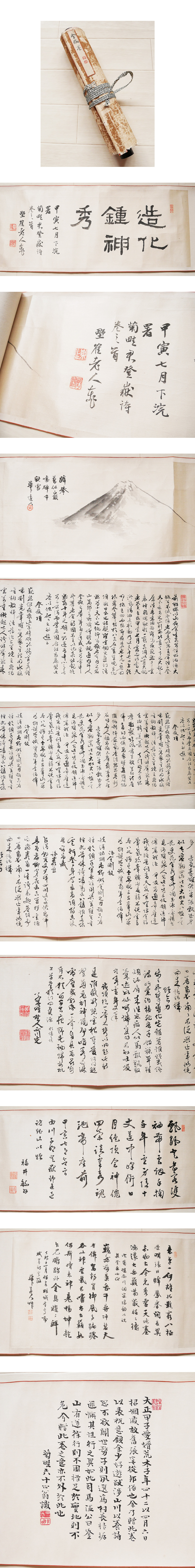 【真作】巻物『 日下部鳴鶴(野鶴)序 華道人ほか 絖本 登嶽巻 長4M 』明治期 書家 南画 中国唐物唐画