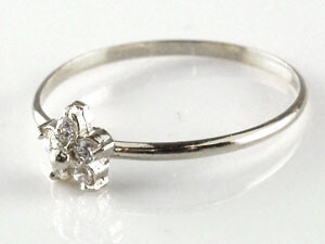 重ねづけリング ピンキーリング ダイヤモンド ダイヤ0.05ct フラワーモチーフ ホワイトゴールドk18 指輪 オリジナル 特別価格 工房直販 ハンドメイドのジュエリー