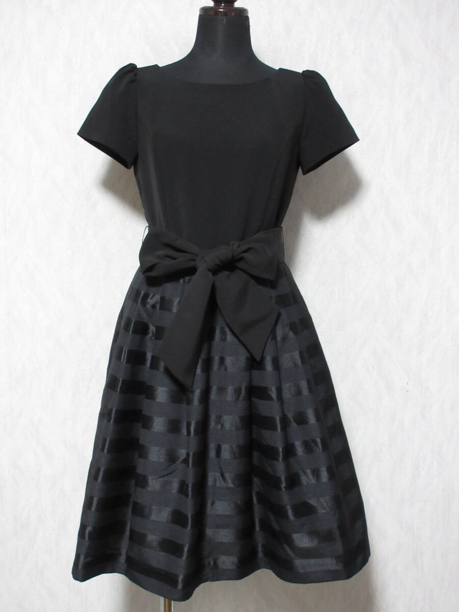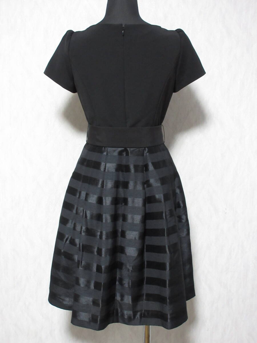 M-PREMIER COUTURE エムプルミエクチュール ボーダー フレアスカート 半袖 ワンピース レディース 34 ブラック yg7420