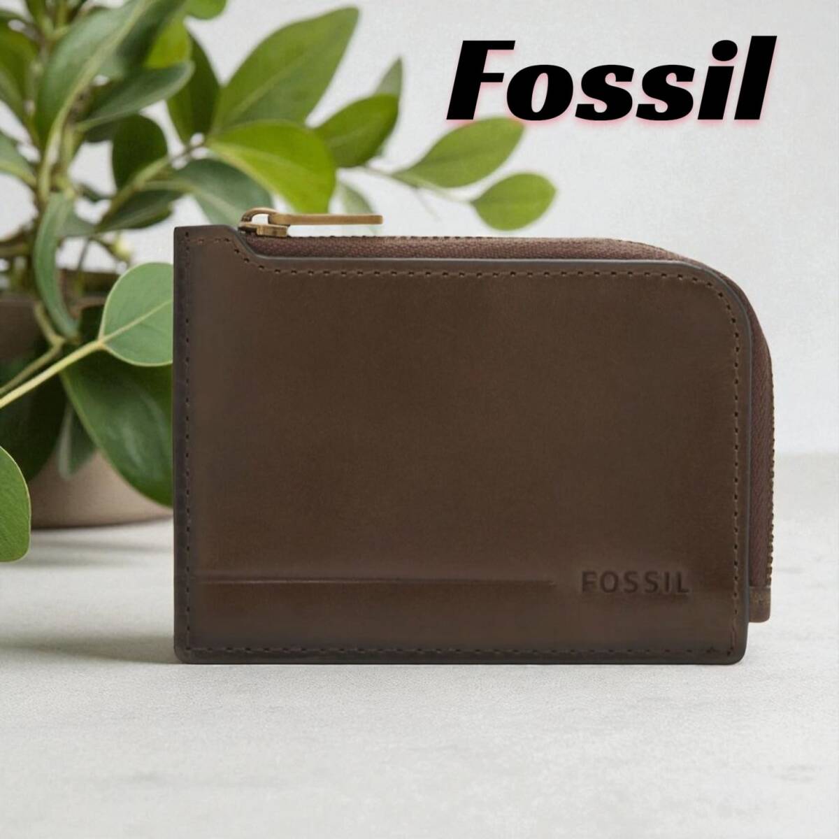 Fossil フォッシル コインケース アレン レザー ジップ カードケース ブラウン コンパクト
