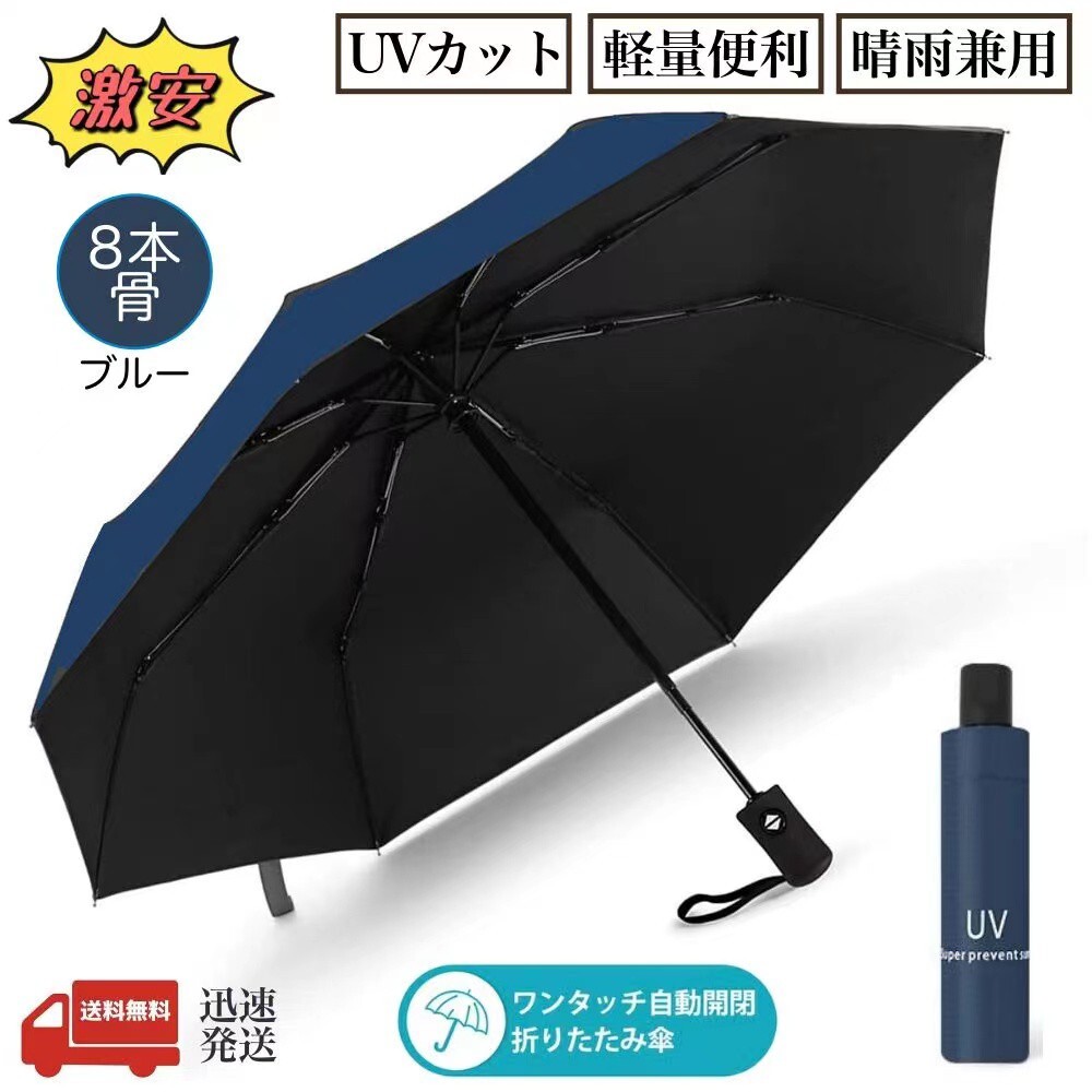 傘 8本骨 日傘 折りたたみ傘 UVカット 軽量 ワンタッチ 自動開閉 晴雨兼用 折り畳み傘 丈夫 レディース メンズ 男女兼用 遮光 遮熱 紫外線遮断 日焼け対策 耐風撥水 梅雨対策 台風対応 携帯便利 収納ポーチ付き