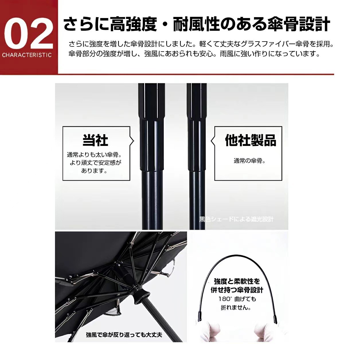【高強度の8本骨を採用】8本の骨構造により、傘全体が強くなり、風雨に強く、飛ばされにくく、曲がる心配もありません。頑丈で耐久性のある上質な太いスプリングが連続的にストレッチを繰り返し、激しい風雨でも傘を安定させます。長期間ご愛用いただけるだけでなく、何度も使っても品質や機能性が劣化することはありません。傘は真の耐久性を誇ります。またその堅牢さから常に最高のパフォーマンスを発揮します。