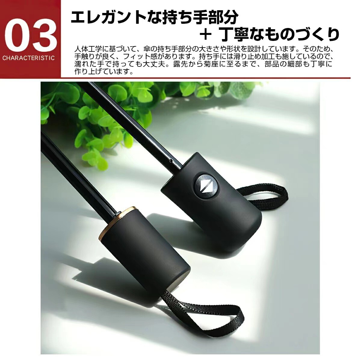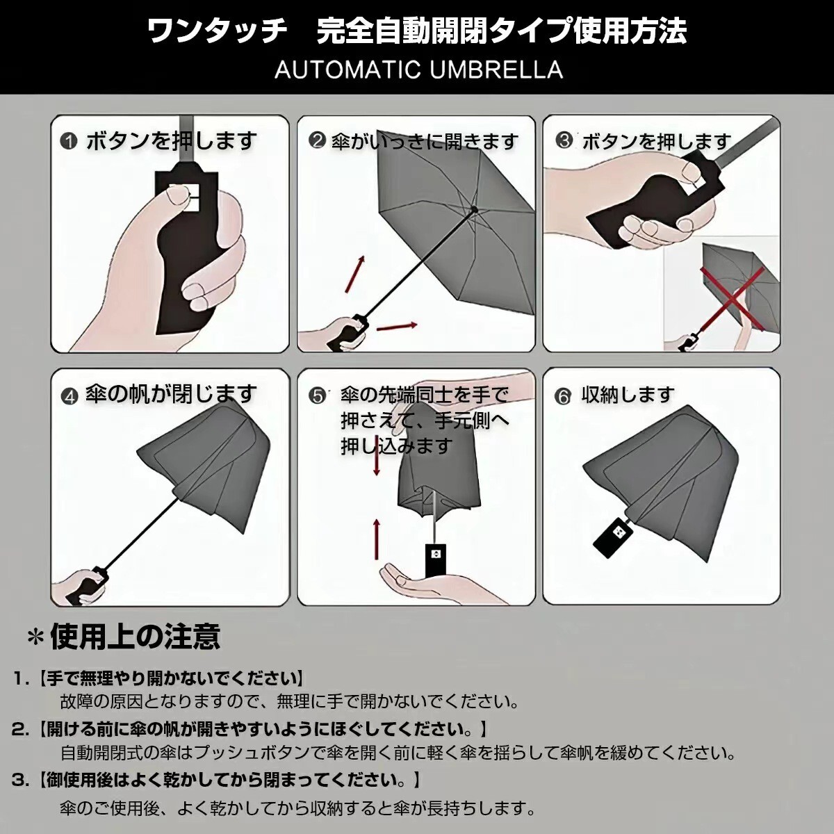 【自動開閉機能つき】生活シーンを想定し、通勤、通学、お買い物などあらゆる場面で選ばれる大きくて濡れにくく、持ち運びやすいバランスの良い自動開閉傘を目指しました。ボタン1つで開閉をサポートします。両手に荷物を持っていても使いやすくなります。日常生活に欠かせないアイテムとして愛され続けること間違いなしです!