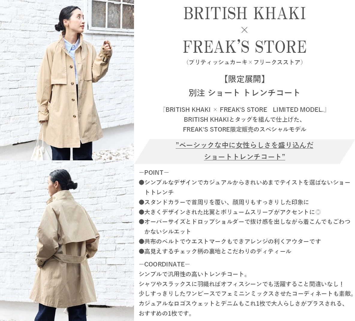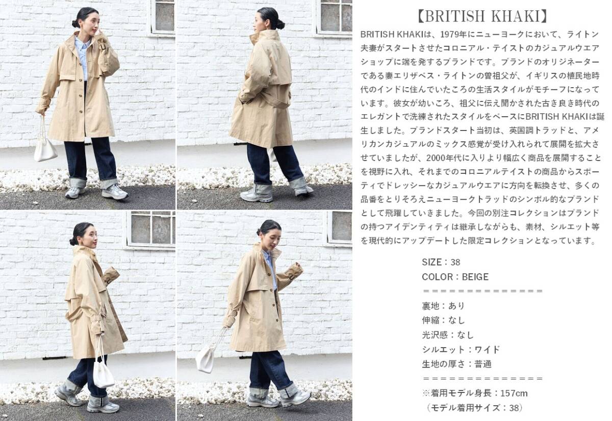 商品説明 | ■管理番号【25023-1009-0007】 ■ブランド:BRITISH KHAKI×FREAK'S STORE ■アイテム:【限定展開】別注 ショート トレンチコート ■色:BEIGE ■素材:表地: コットン65% ナイロン35%、裏地: チェック部分 ポリエステル100%、無地部分 ポリエステル100% ■付属品:ベルト付き ■品番:1353248900392 ■定価:16,995円 ■サイズ:38(身幅62.8cm、着丈88cm、裄丈84cm) ■状態ランク:A ※1~6枚目の画像はイメージです。7~10枚目の画像が実物の画像になります。 ------------------------------------------------------------ S.新品未使用品 A.使用感が見られず試着程度の品 B.使用感があまりなく目立つダメージがないUSED品 C.使用感はあるが比較的ダメージが目立たないUSED品 D.使用感があり、汚れなどのダメージが見られるUSED品 E.かなり使用感があり破れやシミなどが目立つUSED品 ------------------------------------------------------------ |