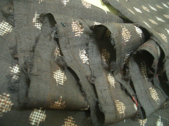 79-2 古布正絹泥大島はぎれ焦げ茶地 112㎝ アンティーク昔着物リメイク古裂