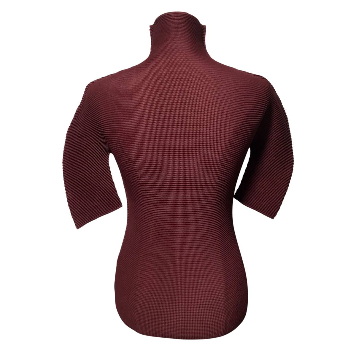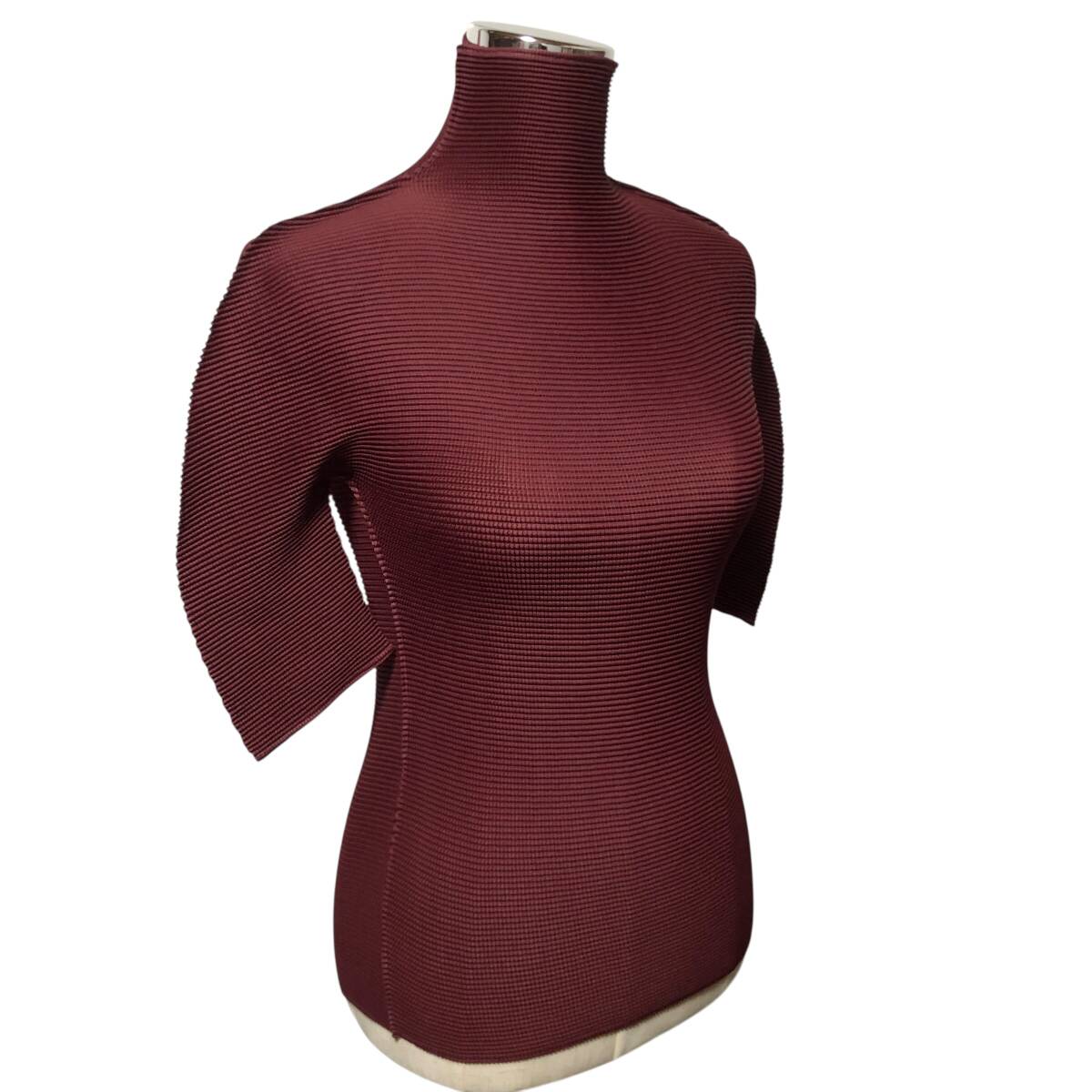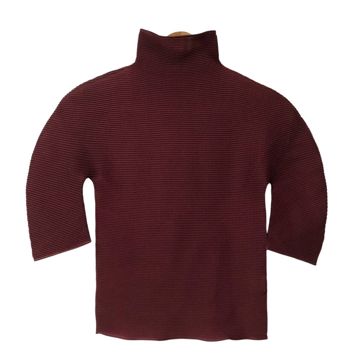 me ISSEY MIYAKE ミー イッセイミヤケ プリーツ ハイネック カットソー 五分袖 ワインレッド レディース A3