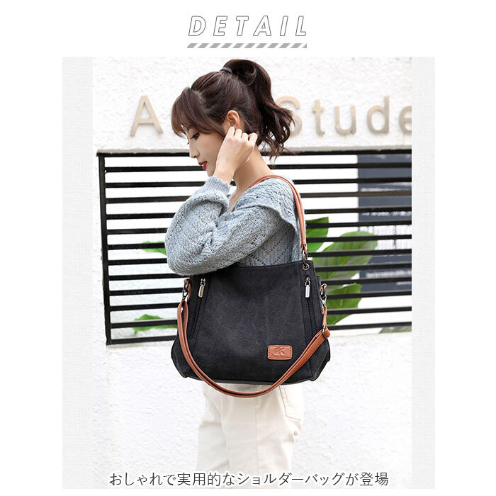 商品説明 | ・・おしゃれで実用的なショルダーバッグが登場。 ・メインルームは何かと便利なB5サイズ対応!ちょうどいいサイズ感で普段のお出かけや買い物におススメ◎ ・メインルームの内側はファスナーポケット×2とオープンポケット×3装備し小物を整理しやすく迷子になりにくい仕様に♪ ・フロントの両サイドと背面にはスマホやパスケースなどの小物を入れられるファスナーポケット付き。 ・ショルダーベルトを外せばトートバッグとしても使用可能◎ ・キャンバス生地とポイントに合皮を使うことでカジュアル過ぎないデザインに。様々なコーデに合わせやすいのもポイント。 |