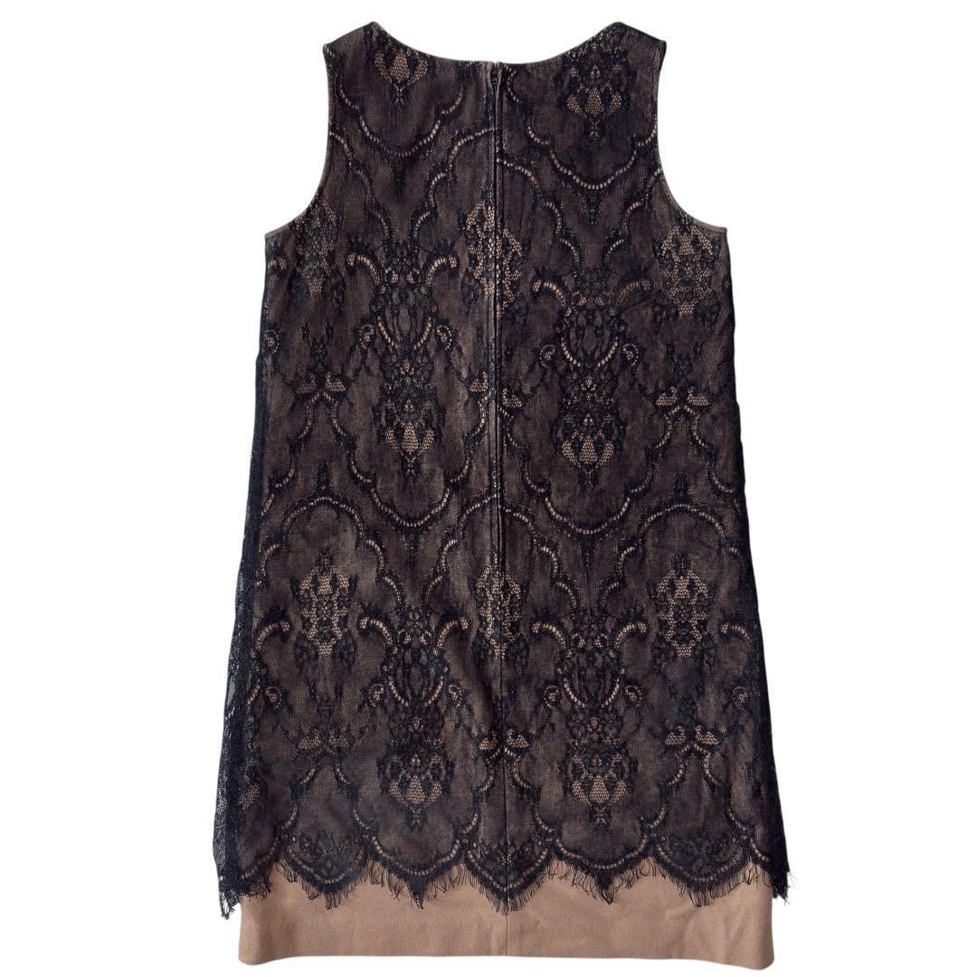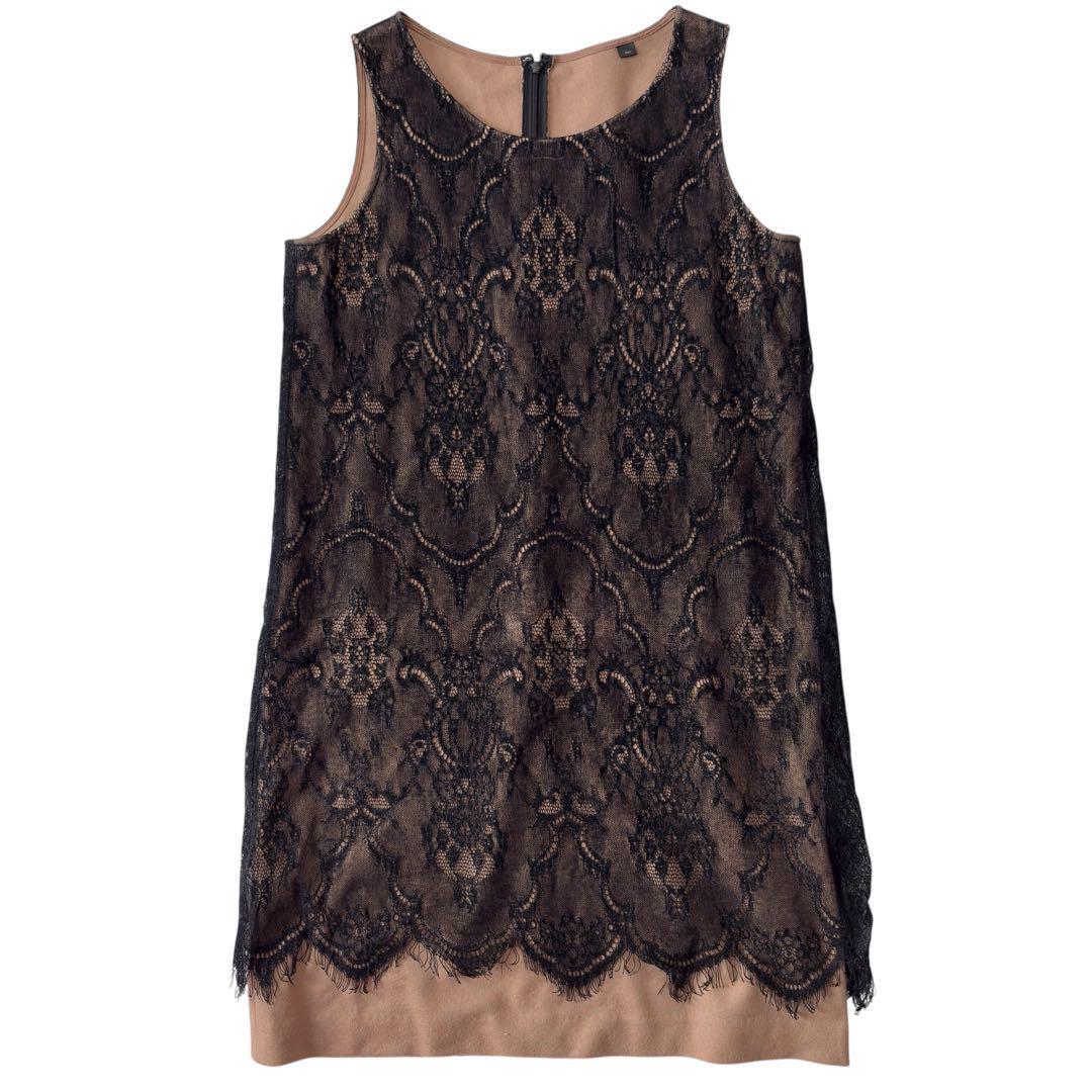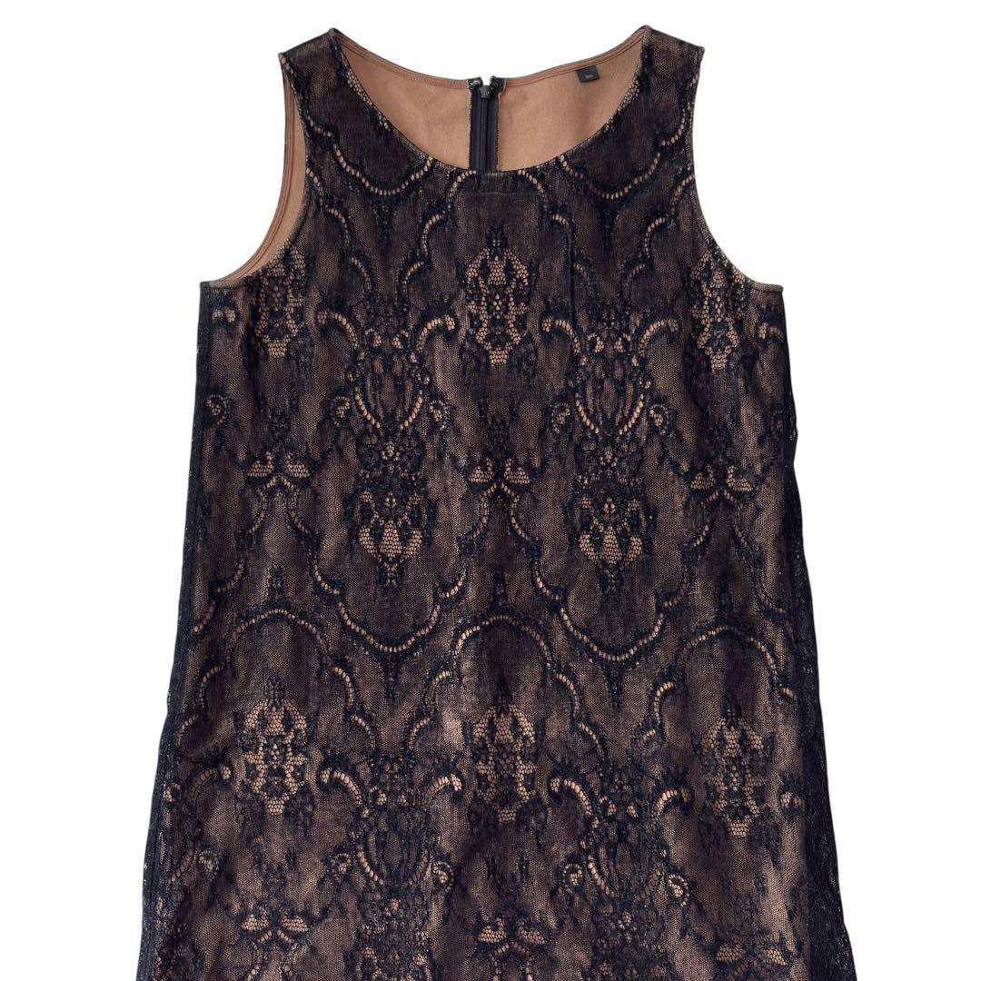 sov. ソブ ワンピース ブラウン レース ウール ノースリーブ パーティ