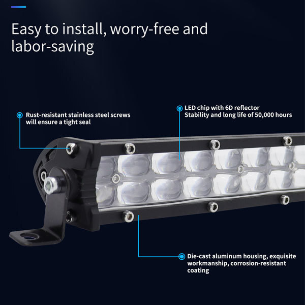 ....優れた機能:なぜ私たちのより良いアップグレードLEDライトバーを選ぶのですか?1、IP68防水、防塵、防振、品質の問題を心配することなく、どんな過酷な環境でもライトを使用できます。2、より良い視界-より長い照射距離とより広い視野を提供し、ドライバーの安全を確保します。3、より良い熱放散-特別に設計されたダイカストアルミニウム合金ヒートシンクは、作業灯の寿命を50000時間以上に効果的に延長します。