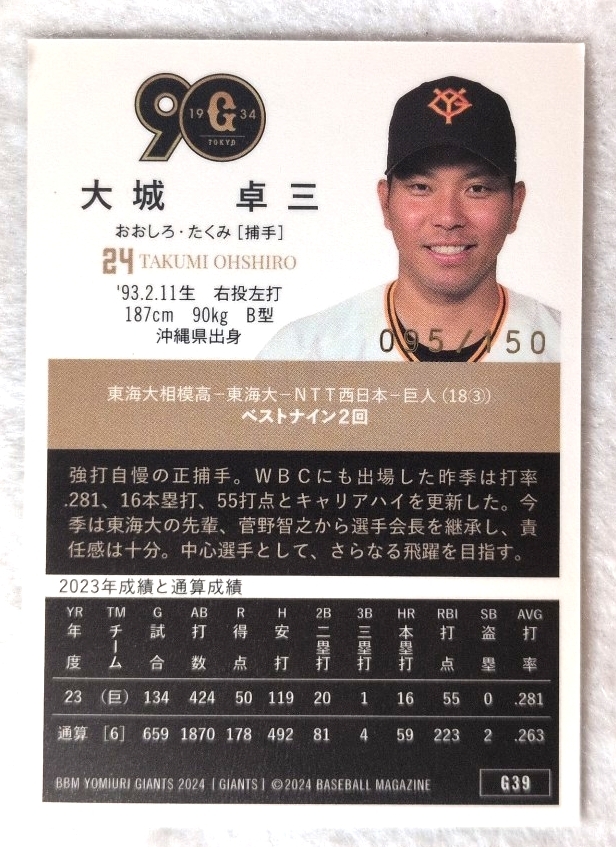 ★150枚限定★ 大城 卓三 読売ジャイアンツ 95/150 BBM 2024