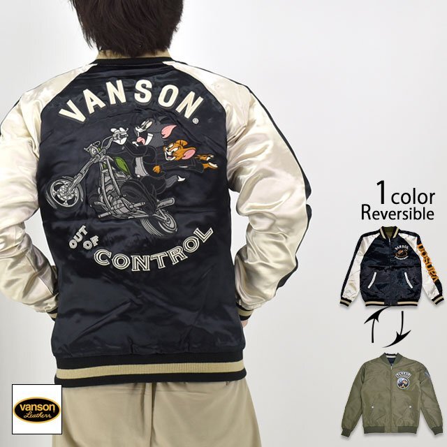 | TOM&JERRYコラボ サテン×ナイロンツイル リバーシブルスカジャン◆vanson VSN-M02403 | ||||||||||||||||||||
