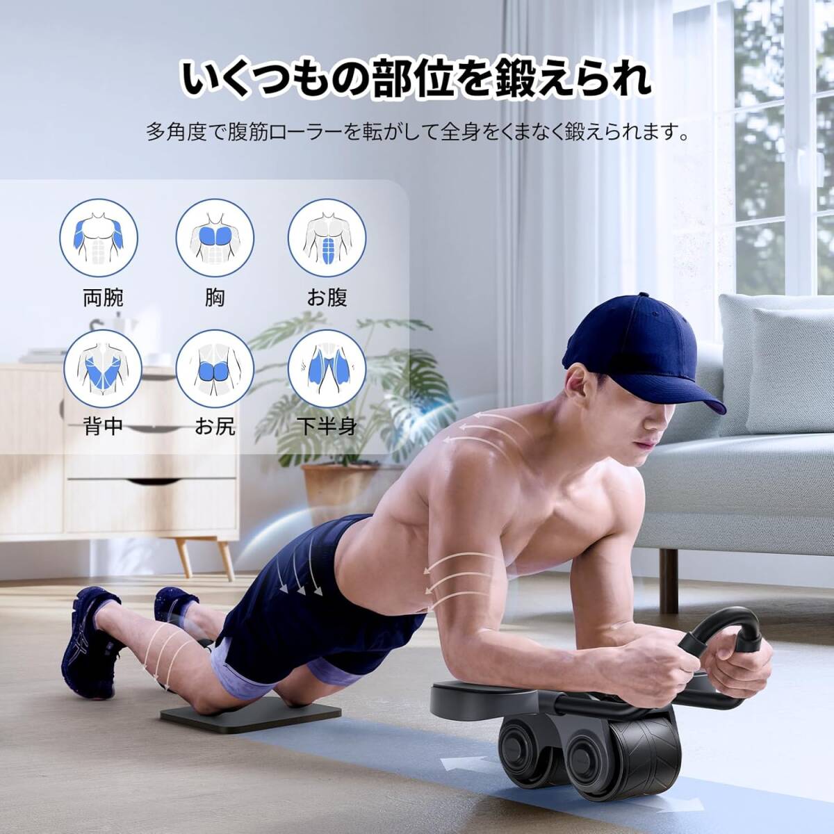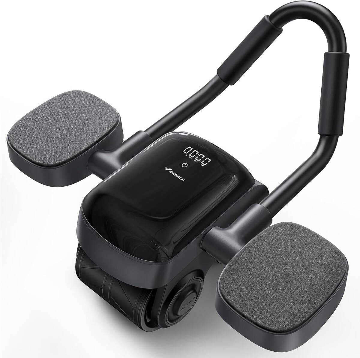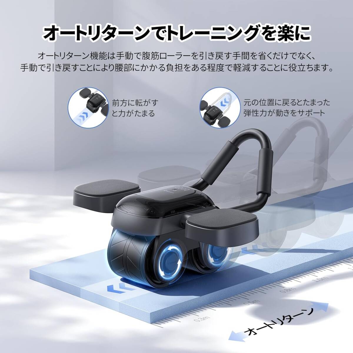 タッチパネル対応の液晶ディスプレイ 腹筋ローラー 腹筋ホイール 膝マット付き プロ 腹筋 ローラー 静音 二輪 高耐久性 メリック