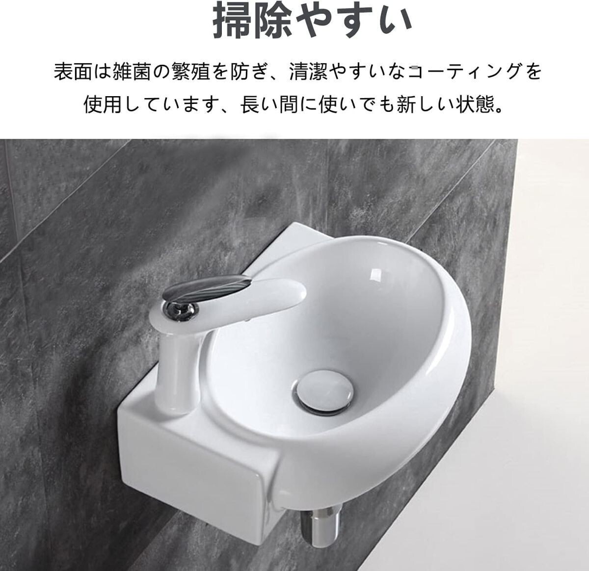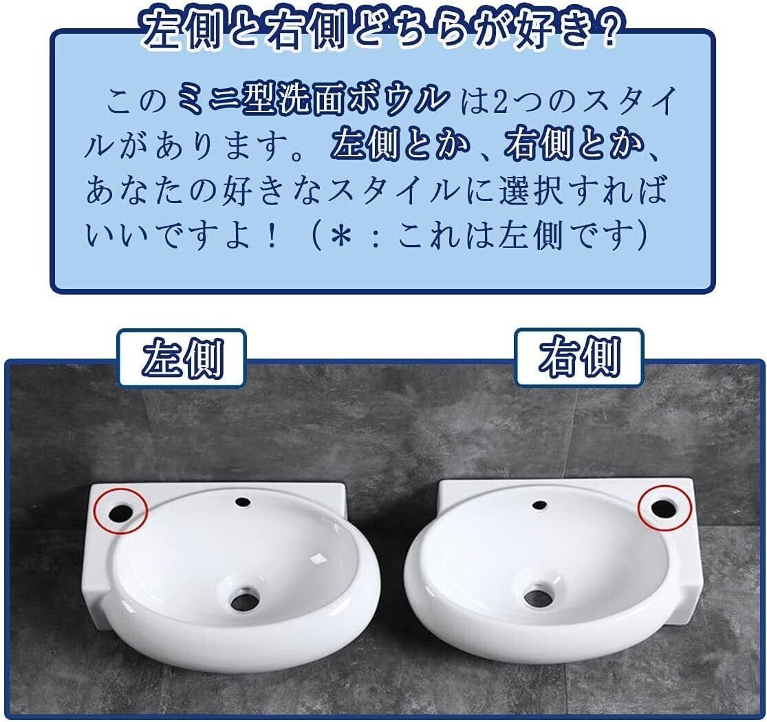 【壁排水セット付き】 おしゃれ 手洗い器 壁掛け 手洗器 コンパクト 小型洗面ボウル 洗面ボール ミニ 洗面台 手洗いボウル 壁付け型 陶器 420*280*150mm (左側) 商品詳細 【壁付け型&省スペース】:手洗いボウルを壁に直接取付けるタイプです。