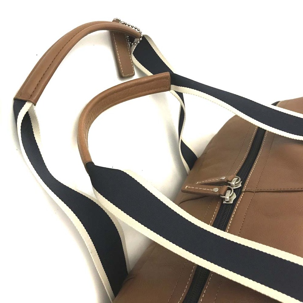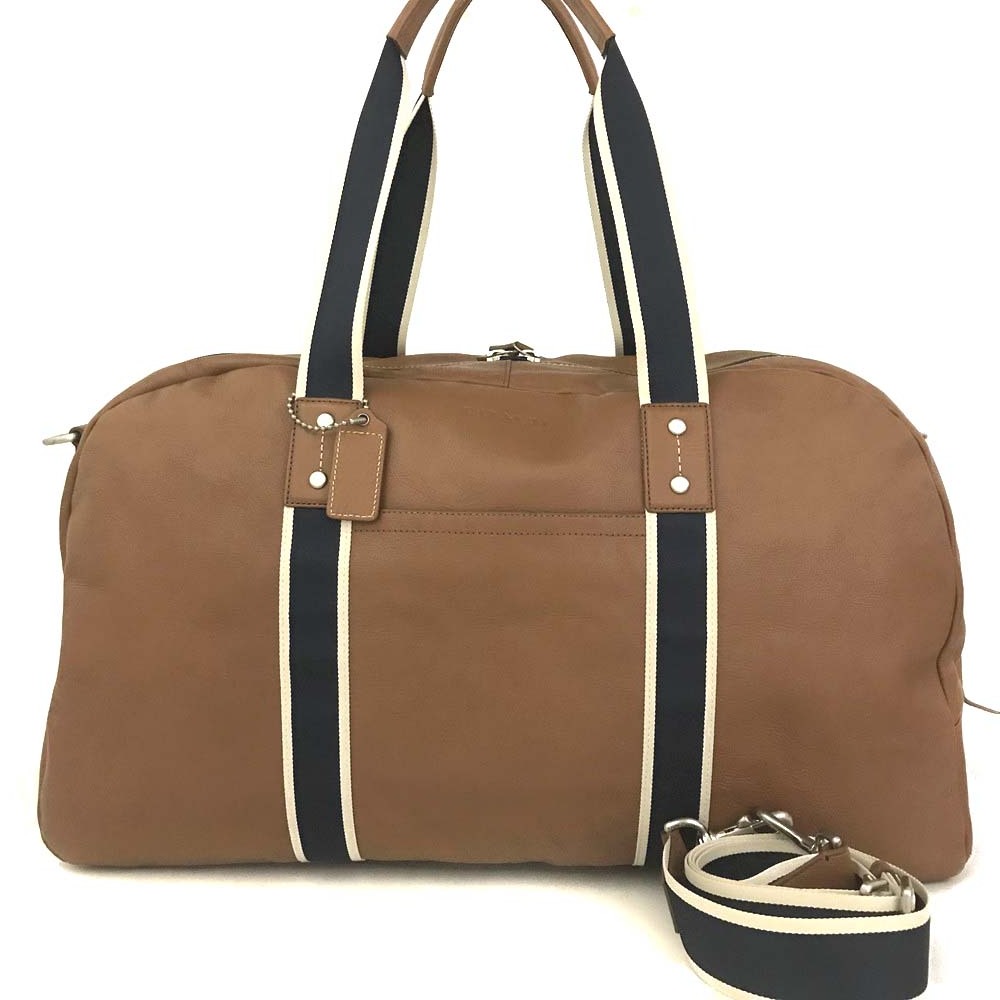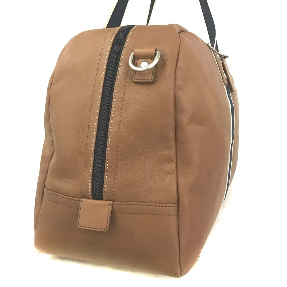 1円 COACH コーチ ヘリテージ ダッフル ストライプ レザー 2WAY ボストンバッグ 旅行バッグ トラベルバッグ ブラウン /ZX0551
