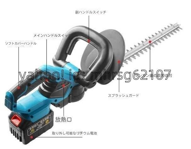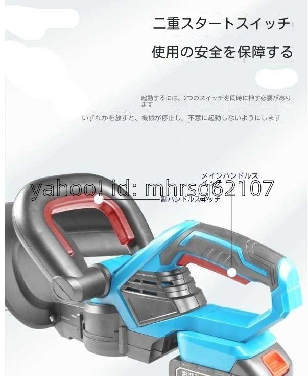 充電式ヘッジトリマー チェーンソー 刈込幅510mm 両刃駆動 芝刈り機 生垣バリカン バッテリー2枚 園芸用 庭木バリカン 剪定機械