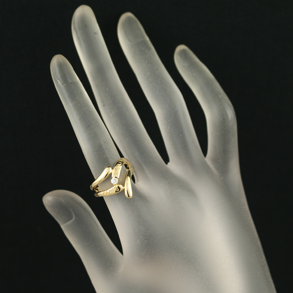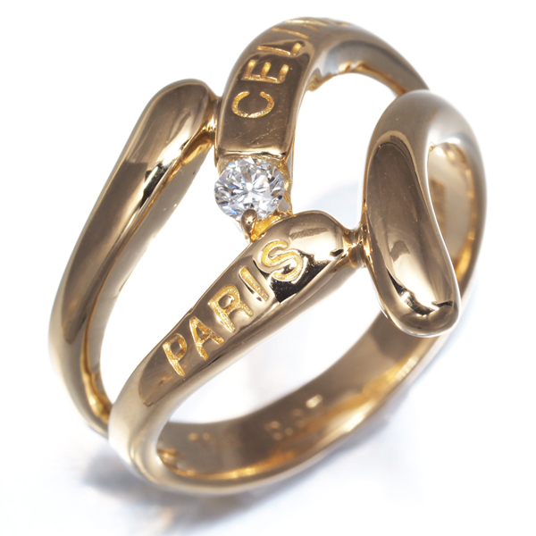 艶やかなゴールド煌めく優雅なデザインリングへ上質ダイヤモンドとブランドネームを刻んだセリーヌのリングです。 |