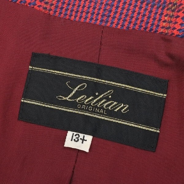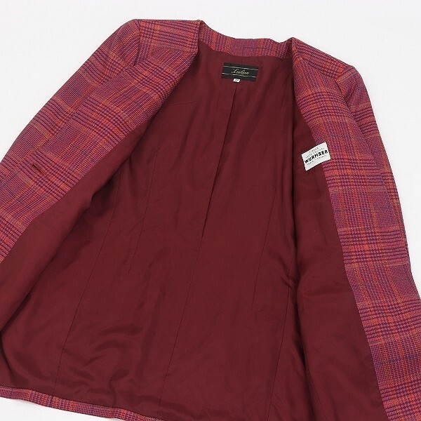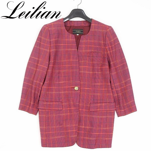 【HA292】◆Leilian レリアン フランス製生地 WURMSER社 グレンチェック柄 ウール 金釦 ホーカラー ジャケット 13+ 大きいサイズ | |