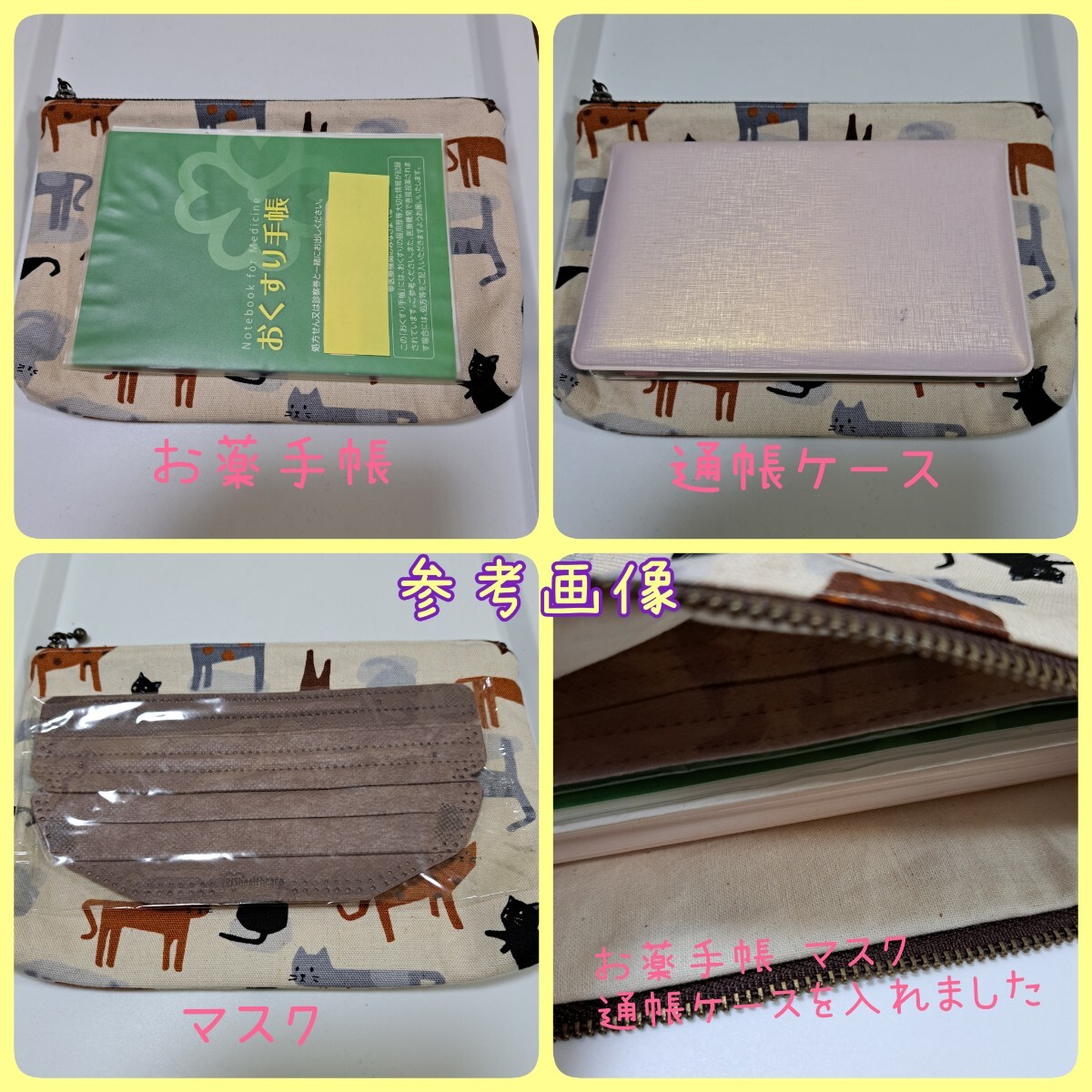 お薬手帳や通帳、マスクや化粧品など、万能につかっていただけるポーチです。