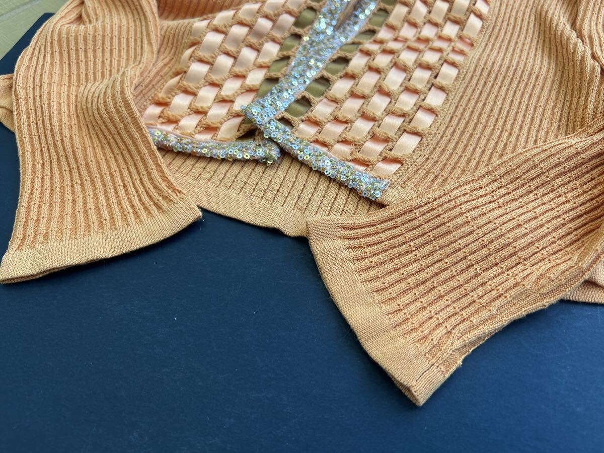 ★即決★ユキコハナイ YUKIKO HANAI カーディガン 長袖レディース★スパンコール★サイズ10★オレンジ★
