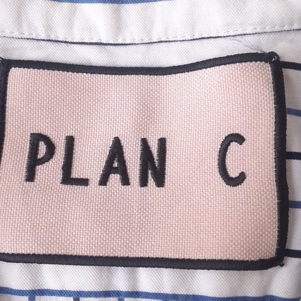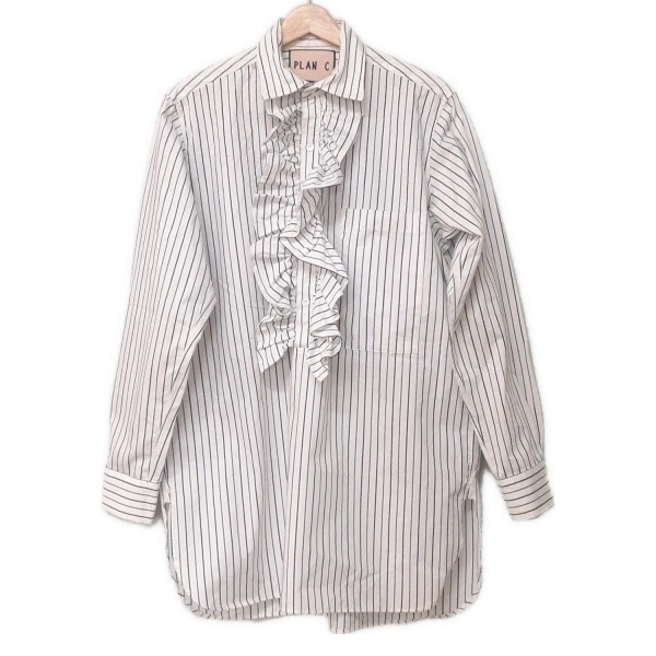 プランシー PLAN C チュニック サイズ40 M - 白×黒×ブルーグレー レディース レギュラーカラー/長袖/ストライプ/フリル ワンピース
