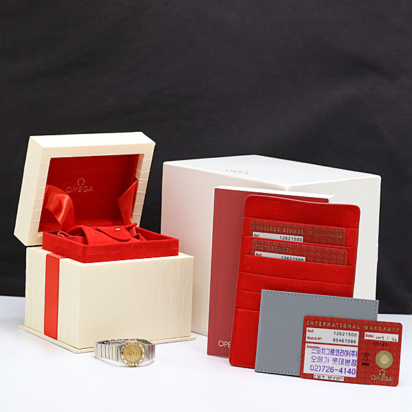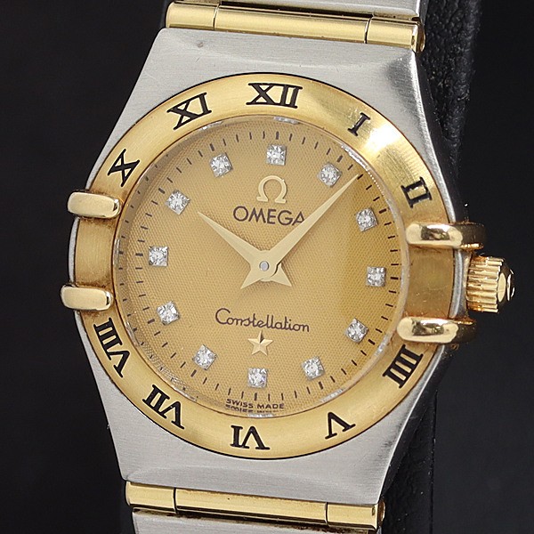 1円 保/箱付 稼働 オメガ コンステレーション YG×SS QZ ゴールド文字盤 レディース腕時計 5028210 9PRT SMZ